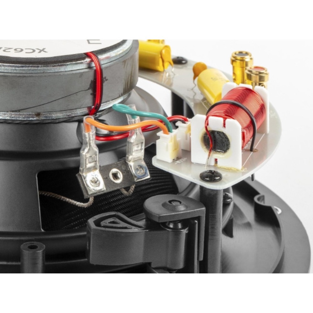 Корпус акустических систем XC62RS сконструирован для установки в стену или в потолок и имеет установочный размер диаметром 210 мм. Три динамика – два высокочастотных 0,75-дюймовых с шелковым куполом и низкочастотный 6,5-дюймовый из плетеного стекловолокна – обеспечивают воспроизведение в диапазоне частот от 65 Гц до 20 кГц при рекомендованной мощности усилителя от 20 Вт до 50 Вт (8 Ом). Акустические системы комплектуются металлическими защитными решетками белого цвета на магнитных креплениях.