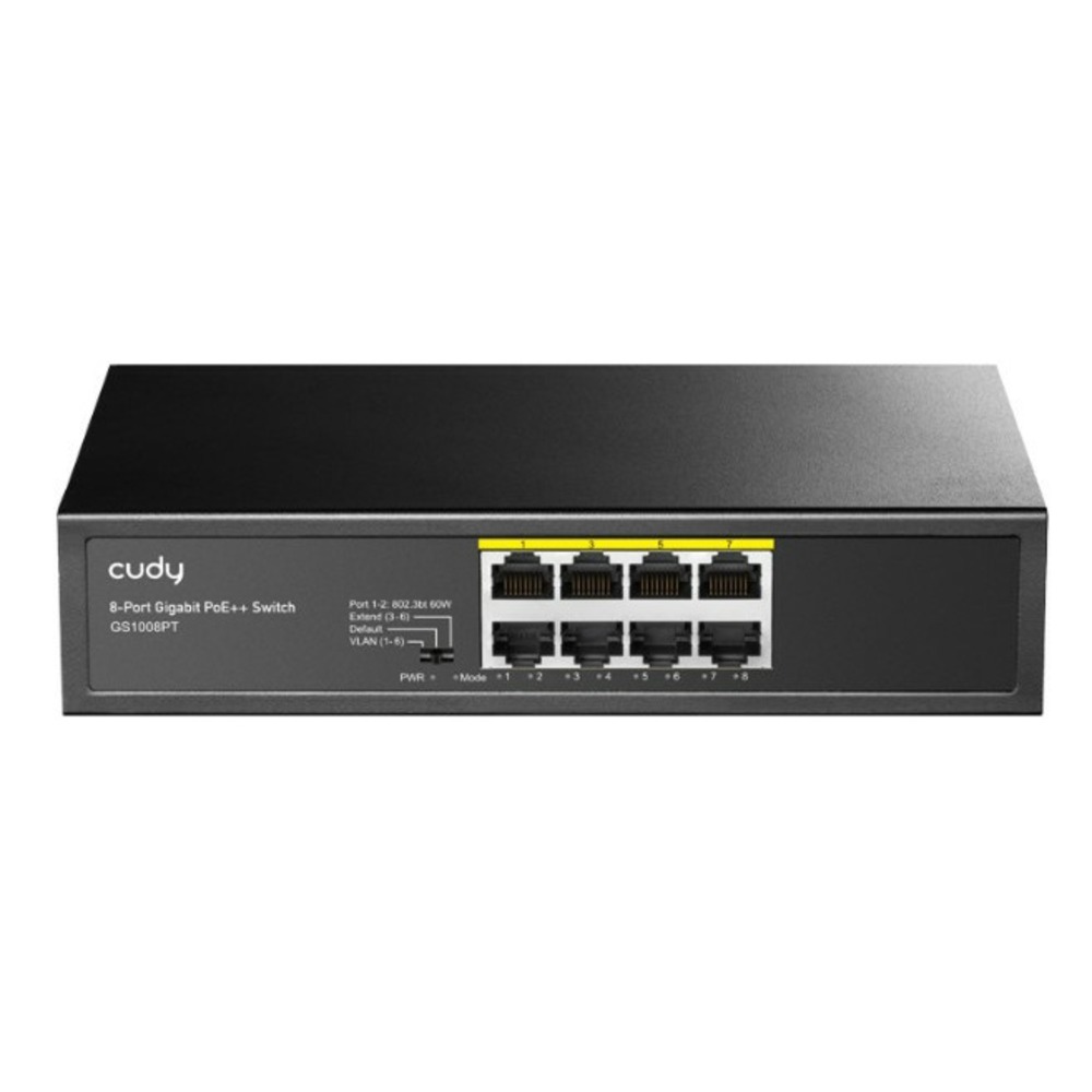 Cudy GS1008PT - это 8-портовый коммутатор с поддержкой PoE+ (Power over Ethernet). Через порты РоЕ передаются и электропитание, и данные к подключенным устройствам. Поддержка стандарта IEEE802.3af/at может обеспечить до 60 Вт мощности на порты 1 и 2, до 30 Ватт мощности на каждый из портов 3 - 8, и суммарно до 120 Вт на все PoE-порты. Коммутатор имеет специальный переключатель DIP для выбора режима работы: VLAN, Default или Extend. В режиме VLAN порты 1-6 изолированы друг от друга для повышения безопасности сети (режим изоляции разделяет трафик портов для защиты от постороннего вмешательства и широковещательных штормов), все могут связываться с портами восходящей связи 7 и 8. В режиме Default все порты связываются друг с другом в обычном режиме, передача данных и питания на расстояние до 100 метров. В режиме Extend порты 3-6 могут передавать данные и питание на увеличенное расстояние до 250 метров на скорости 10 Мбит/с. Плавная и надёжная передача чувствительного к задержкам трафика (например, видеосвязи или IP телефонии) обеспечивается приоритизацией, гарантируется стабильное питание ключевых устройств и защита от повреждения несовместимых устройств.