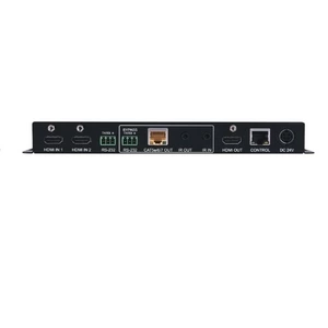 CDPS-U2HPIP – двухоконный мультивьювер, бесподрывный коммутатор 2x1 сигналов HDMI с дублирующим выходом HDBaseT (дальность передачи до 70 м) с PoH, поддержка входных и разрешений до 4096x2160/30 (4:4:4, 8 бит) и HDCP 1.4 и 2.2. Бесподрывное переключение источников выполняется через «черный экран». Устройство работает с эффектами: «картинка-в-картинке», 1(3)+1, «сторона-к-стороне», использование логотипа и хромакея. 4 заводских конфигурации окон, вызываемых кнопками с лицевой панели, дополнительно можно назначить до 5 пользовательских предустановок. Управление по ИК, RS-232 и IP (по протоколу Telnet или через web-интерфейс).