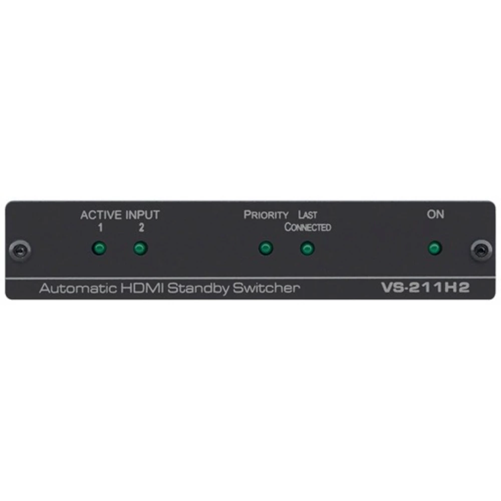 VS-211H2 – коммутатор 2х1 HDMI 4K/60, 3D c HDCP 2.2 (YUV 4:4:4) с автоматической коммутацией по наличию сигнала. При отсутствии сигнала на приоритетном входе автоматически переключается на резервный, при появлении сигнала на основном входе выполняет обратное переключение. Также возможна коммутация в ручном режиме (нет локального управления, только удаленное управление замыканием «сухих» контактов). Выполняет перетактирование и эквализацию входных сигналов, что позволяет удлинить линию передачи. Выбор режима с помощью DIP-переключателей.