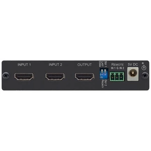 VS-211H2 – коммутатор 2х1 HDMI 4K/60, 3D c HDCP 2.2 (YUV 4:4:4) с автоматической коммутацией по наличию сигнала. При отсутствии сигнала на приоритетном входе автоматически переключается на резервный, при появлении сигнала на основном входе выполняет обратное переключение. Также возможна коммутация в ручном режиме (нет локального управления, только удаленное управление замыканием «сухих» контактов). Выполняет перетактирование и эквализацию входных сигналов, что позволяет удлинить линию передачи. Выбор режима с помощью DIP-переключателей.