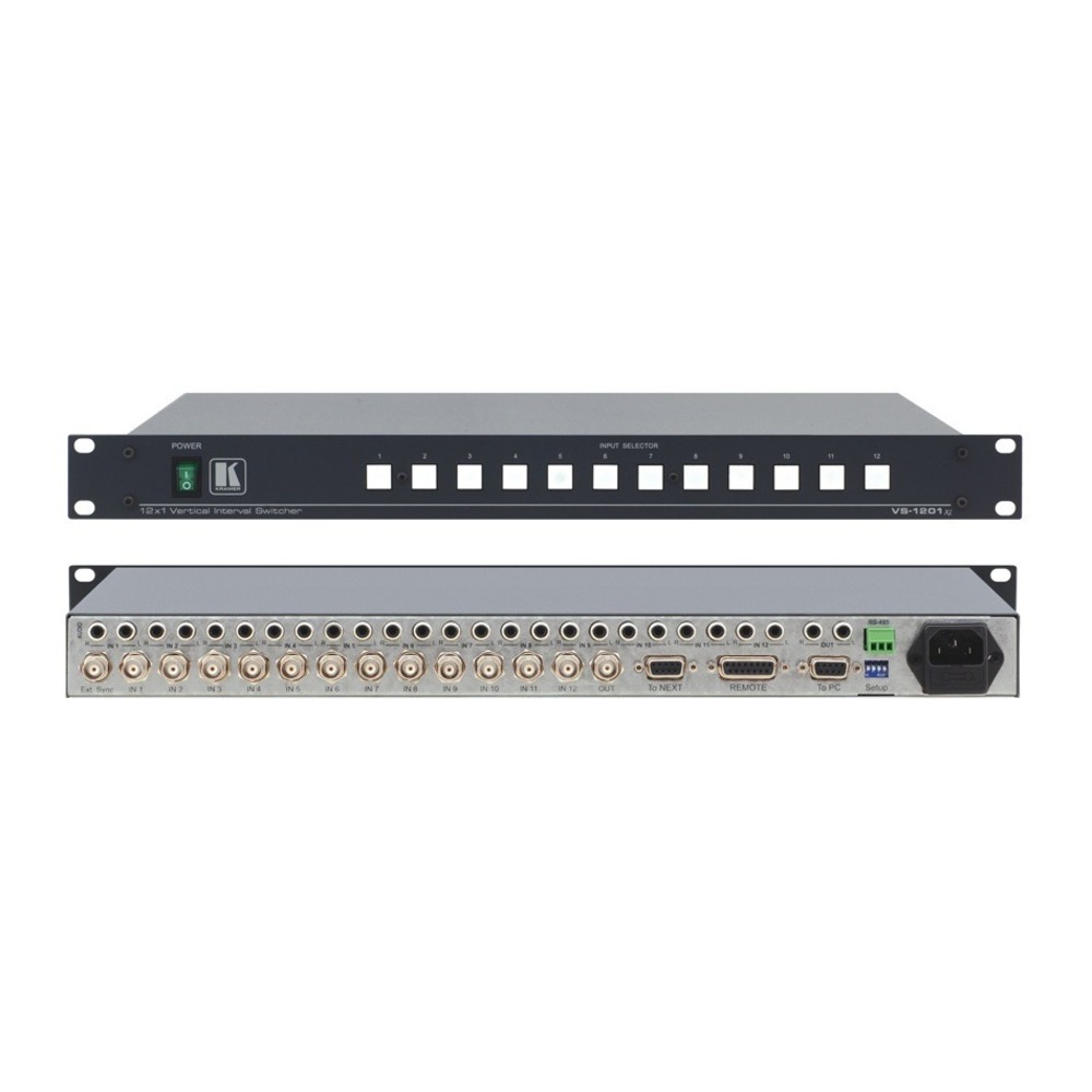 | Входы | 12 видео (композитный или одна составляющая компонентного), 1 В/75 Ом, разъемы BNC. 12 аудио стерео, +4 dBm, 10 кОм, разъемы RCA. 1 внешнего синхросигнала (или композитный видео), 1 В/75 Ом, разъем BNC |