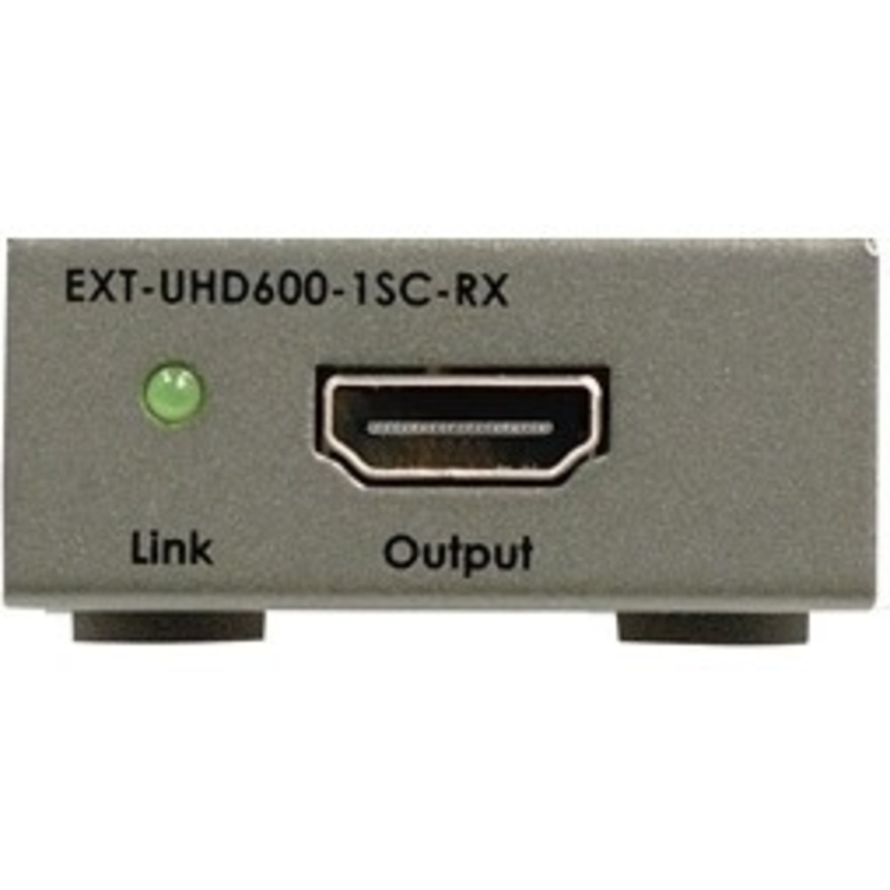 EXT-UHD600-1SC – комплект устройств для передачи сигналов HDMI разрешением до 4096x2160/60 Гц (4:4:4, с HDR – 4:2:0) по многомодовому оптоволоконному кабелю с разъемами SC. Поддержка HDCP 1.4 и 2.2, 3D, Deep Color 10 и 12 бит, многоканального аудио LPCM 7.1, Dolby Atmos, Dolby TrueHD, DTS:X и DTS-HD Master Audio. Расстояние передачи при разрешении 4096x2160/60 достигает 200 м (при использовании кабеля категории OM3 или лучше).