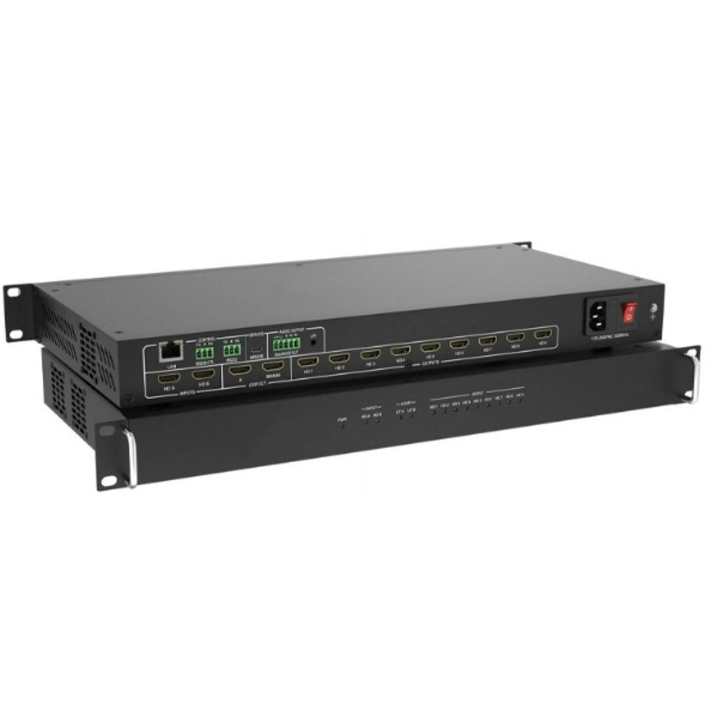 Контроллер видеостен 2х9, который способен работать с двумя источниками сигнала и выводить изображение на видеостену размером до 9 экранов! Имеется поддержка HDMI 2.0 и видеоразрешений до 4K 60Hz. Устройство может управляться через порт RS232 и LAN.