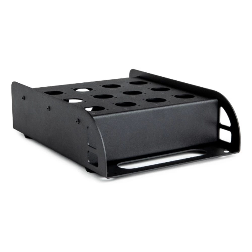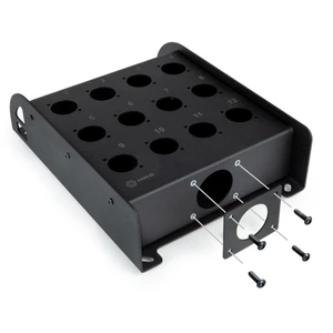 Короб сценический, компактный, 12 отверстий под разъемы с фланцем "D" типа, отверстие под кабельный ввод PG29; возможность крепления на стену, цвет: черный, матовый