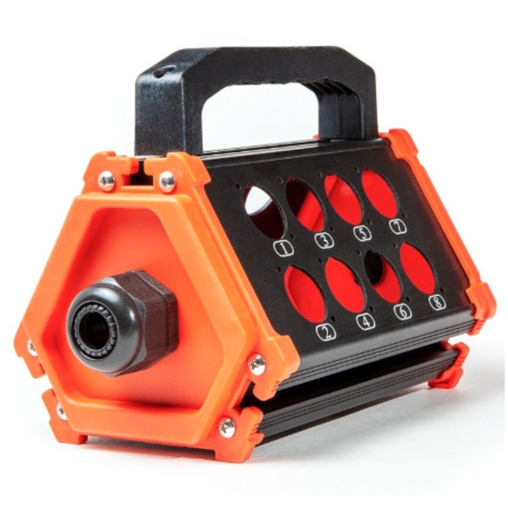 Короб сценический "треугольный", 16 пронумерованных отверстий под разъемы с фланцем "D" типа, рукоятка для переноски, материал -  алюминий/пластик