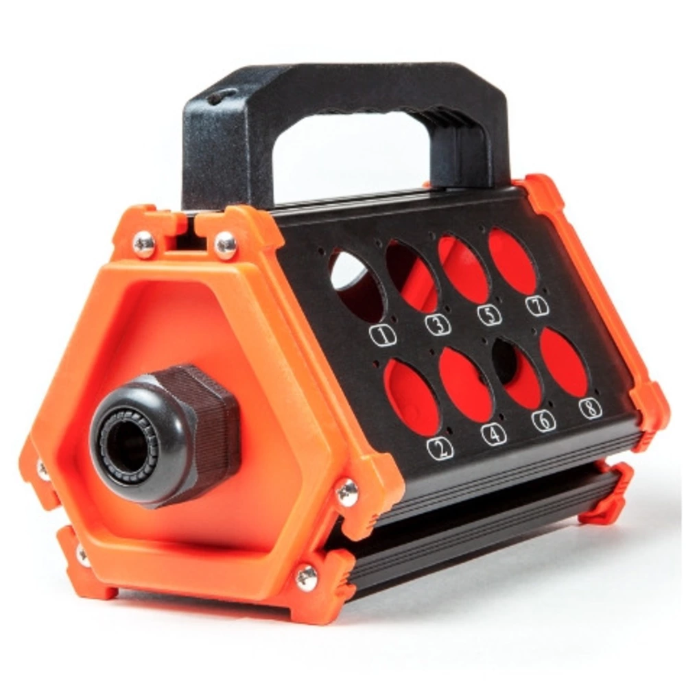 Короб сценический "треугольный", 16 пронумерованных отверстий под разъемы с фланцем "D" типа, рукоятка для переноски, материал - алюминий/пластик