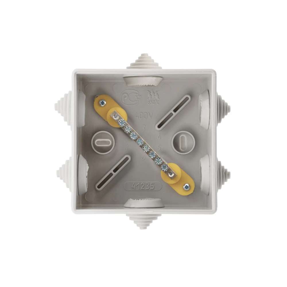 Распаячная коробка предназначена для защиты кабельных соединений от пыли, влаги и механических повреждений. Предназначена для крепления на стены, потолки, лотки. Винтовое крепление крышки, дополнительная влагозащита. Укомплектована вводными сальниками. Характеристики: Размер: 150х110х70 мм Степень защиты: IP55 Цвет: серый Количество вводов: 10 Материал: полипропилен