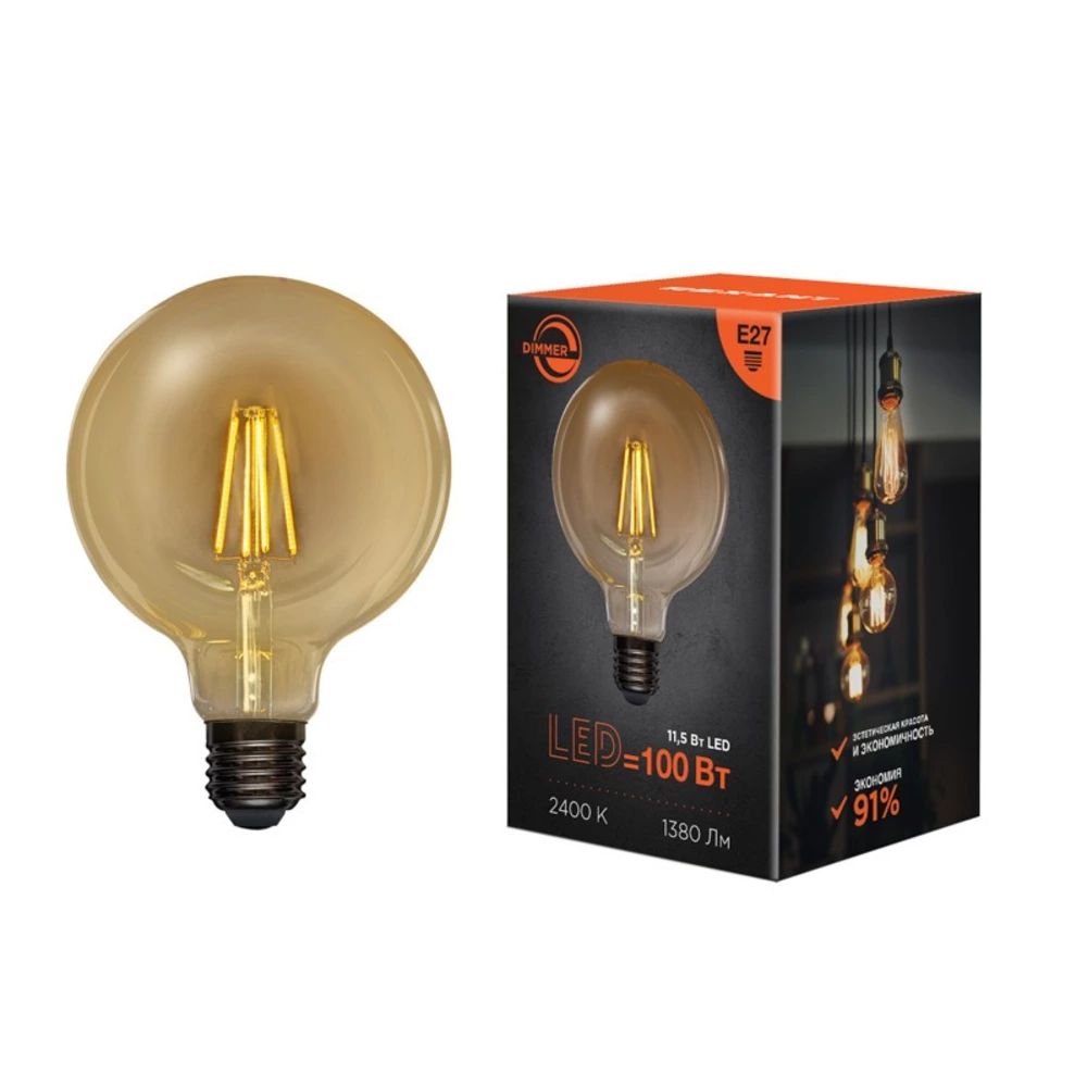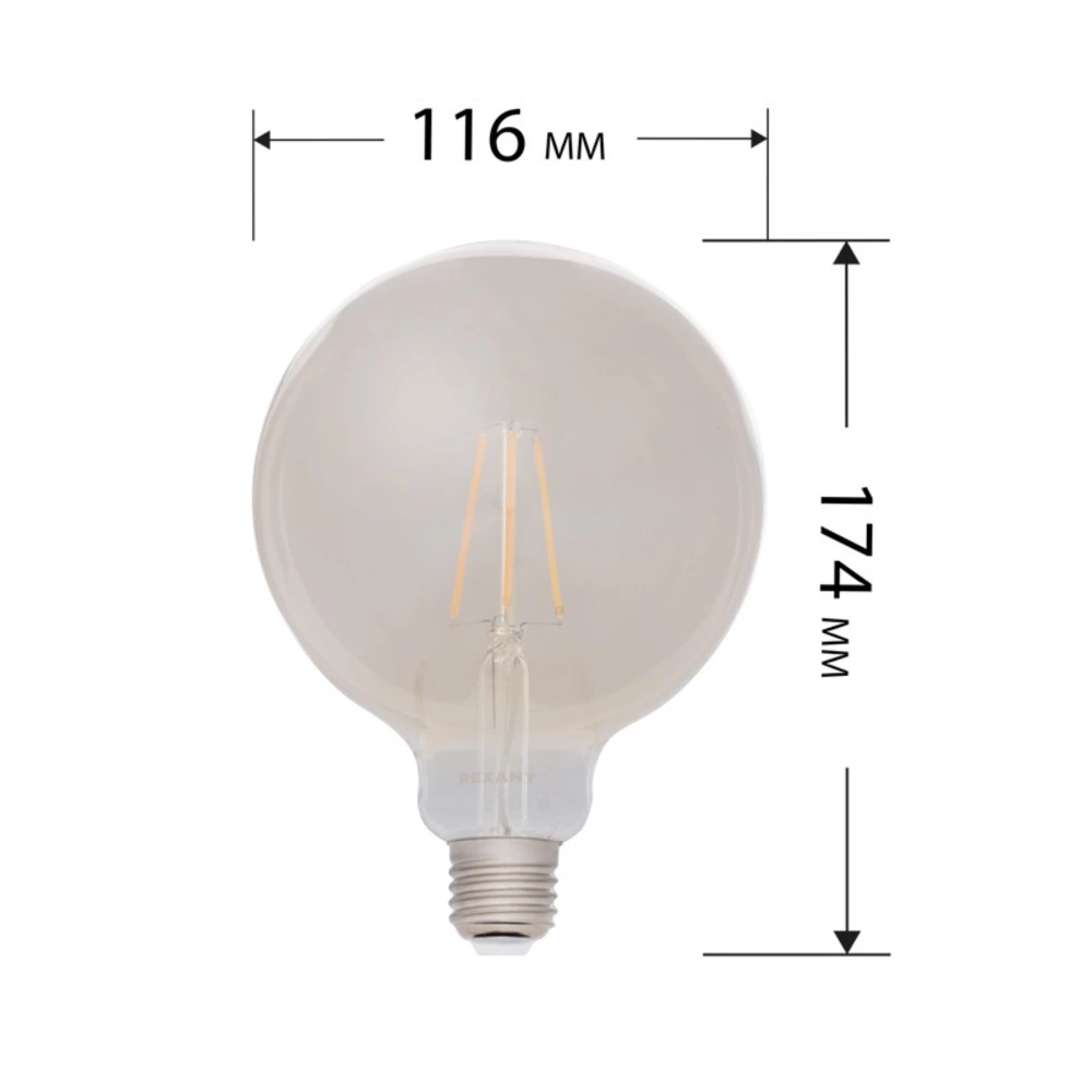Лампа филаментная Rexant 604-145 Груша A125 11.5 Вт 1380 Лм 2400K E27 диммируемая золотистая колба, 5шт