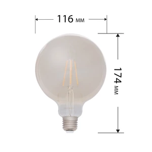 Филаментная прозрачная лампа REXANT A125 в форме груши мощностью 11.5Вт с цоколем E27 и с теплым белым свечением в 2700K прекрасно подходит для дизайнерского освещения комнат, домов, гостиниц, кафе, и других объектов. Филаментные светодиодные лампочки вобрали в себя все лучшие свойства, присущие матричным LED-лампам и традиционным лампам накаливания. Они обладают высокой энергоэффективностью и долгим сроком службы. За счет распространения света во всех направлениях, филаментные лампочки REXANT потребляют еще меньше электроэнергии при более высокой яркости. Утилизации ламп не требует особых мер. Их можно вынести с бытовыми отходами, так как они безопасны и для окружающей среды. Яркость свечения филаментной лампы можно отрегулировать при помощи диммера.