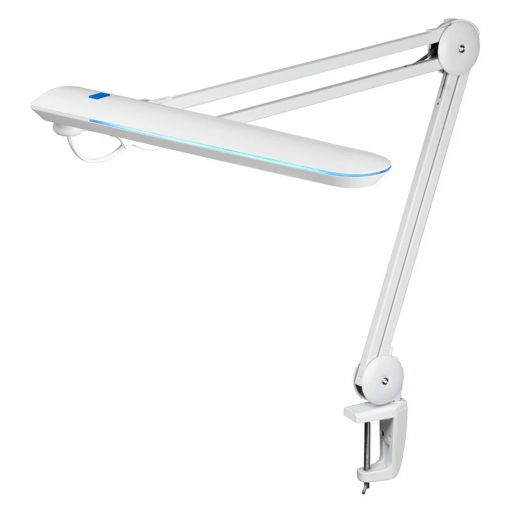 Лампа настольная на струбцине, 60 SMD LED, белая. Лампа имеет множество рычагов и механизмов для точной фиксации в любом положении. Подходит для использования как взрослыми, так и маленькими детьми, в офисе, рабочем помещении или дома. На корпусе лампы имеется кнопка включения и выключения. Диоды лампы REXANT стабилизированы, что обеспечивает мгновенное включение и выключение лампы. Прекрасно подойдет для использования в слабоосвещенных помещениях и для работы в темное время суток. Имеет приятный, плавный дизайн. Крепится на любую плоскую горизонтальную поверхность с помощью струбцинного зажима. ТЕХНИЧЕСКИЕ ХАРАКТЕРИСТИКИ Напряжение питания: АС 230 В / 50 Гц; Источник света: 60 светодиодов; Потребляемая мощность: 12 Вт; Световой поток: 1200 Лм; Цветовая температура: 6000 К (холодный белый свет); Цвет корпуса: белый.