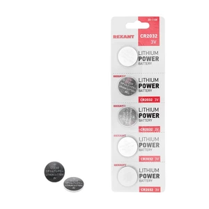 Литиевые батарейки CR2032 REXANT нужны для небольших электронных устройств: часов, весов, калькуляторов, брелоков, медицинских приборов (термометров и пр.) Характеристики товара: напряжение 3 В; 5 штук в упаковке; низкий саморазряд;