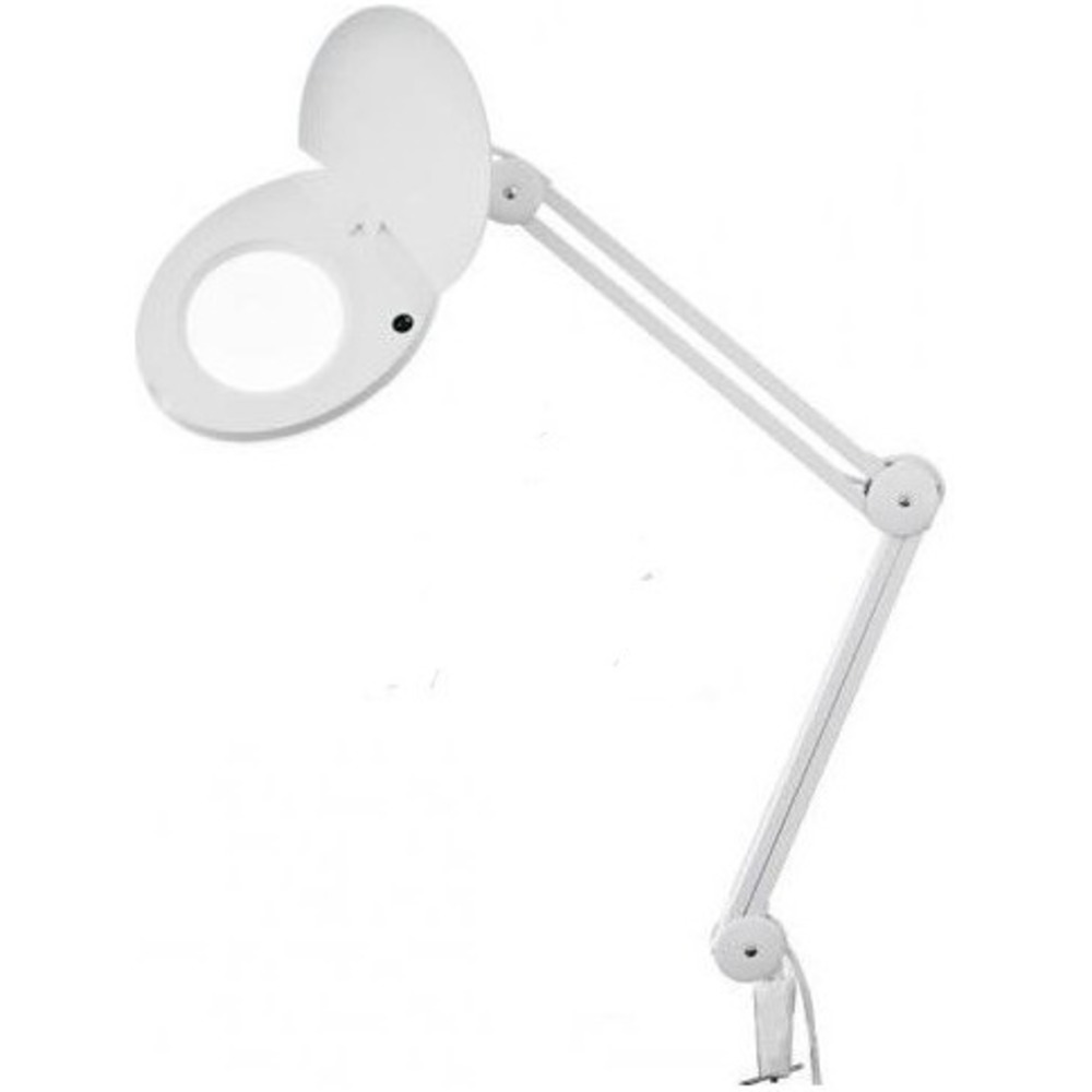 Лупа на струбцине круглая настольная 3Х с подсветкой с крышкой, белая REXANT предназначена для визуального увеличения различных мелких предметов или их фрагментов. Она используется в косметологии, при выполнении ювелирных и радиомонтажных работ, при ремонте часов, в биологии и медицине, для организации труда людей со слабым зрением, а также для других работ, где требуется дополнительное увеличение и подсветка рабочего поля. Такая оптическая система состоит из линзы, удобного пантографического механизма и бестеневой подсветки.