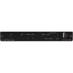 VP-424C – масштабатор сигналов HDMI и USB-C разрешением до 4K/60 (4:4:4). Входной сигнал преобразуется в выходной с понижением или повышением разрешения. Полоса пропускания 600 МГц.