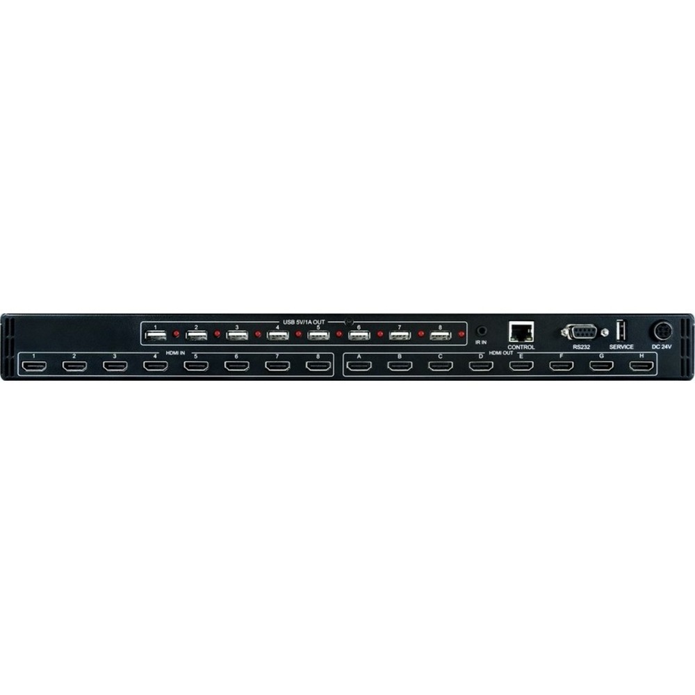 CPLUS-V8H8HPA – матричный коммутатор 8х8 сигналов интерфейса HDMI 2.0 разрешением до 4096x2160/60, (4:4:4) с поддержкой технологии HDR, HDCP 1.4, 2.2 и расширенным набором заводских конфигураций EDID-блока. Наряду с выходными разъемами HDMI присутствуют соответствующие разъемы стереоаудио (8х miniJack 3,5 мм). Полоса пропускания 600 МГц. Поддержка эмбеддированного аудио в форматах LPCM 7.1, Bitstream и HD Bitstream. Управление прибором осуществляется по ИК, RS-232 и IP (Telnet и web-интерфейс).
