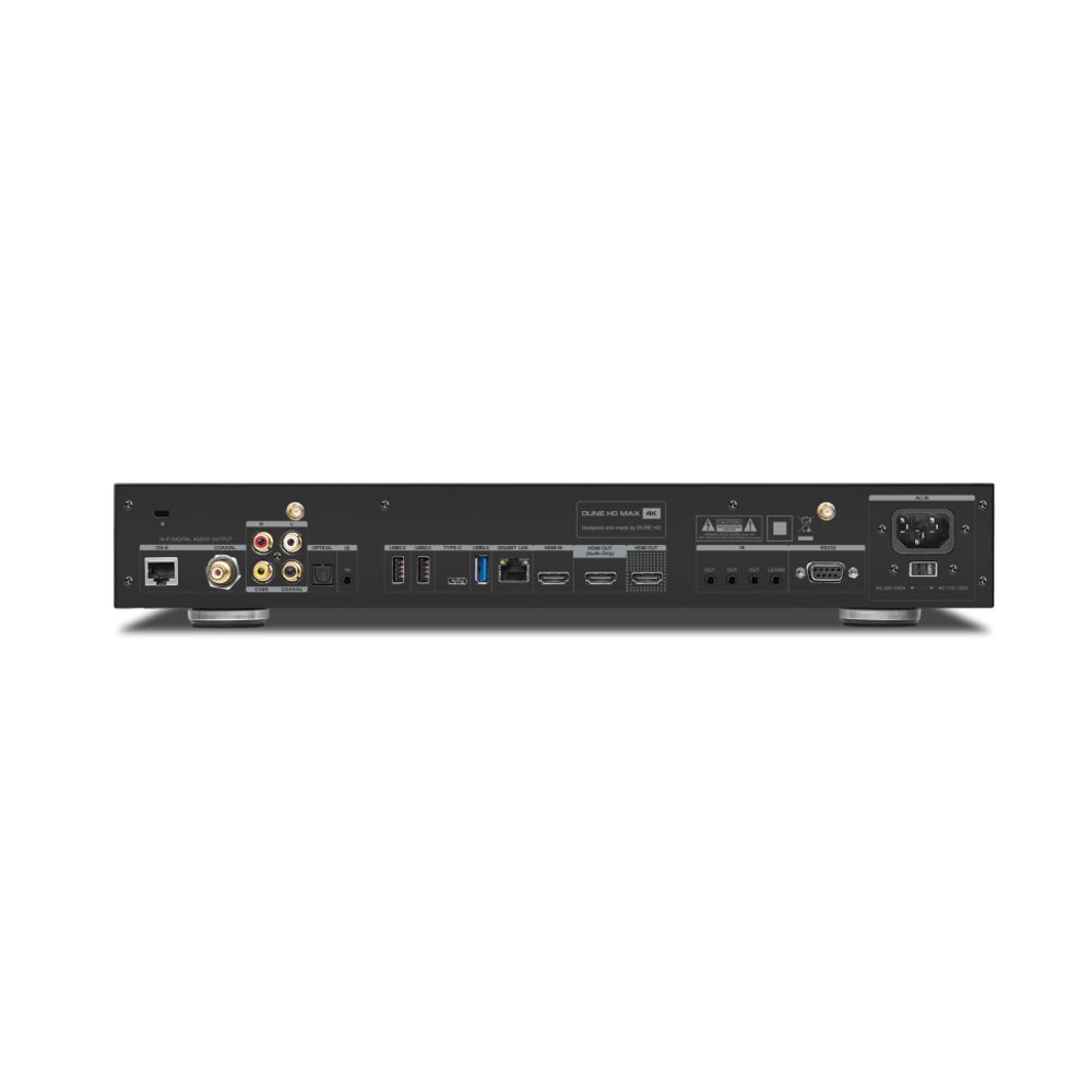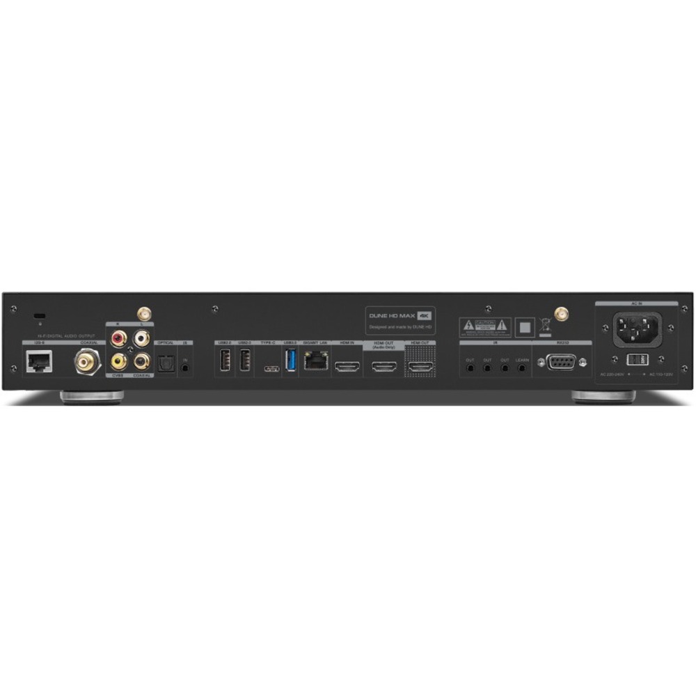 | Тип | Dune HD Max 4K - полноразмерный премиальный медиаплеер c двумя отсеками для HDD 3.5", двумя HDMI-выходами, Hi-Fi цифровыми аудиовыходами, Hi-End линейным блоком питания и продвинутой коммутацией. |