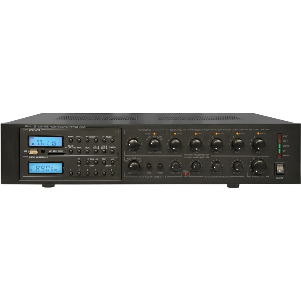 | Тип | 6-ти зонный микшер-усилитель, встроенный FM-тюнер/MP3/USB и SD/MMC плеер. 240 Вт/100В. |