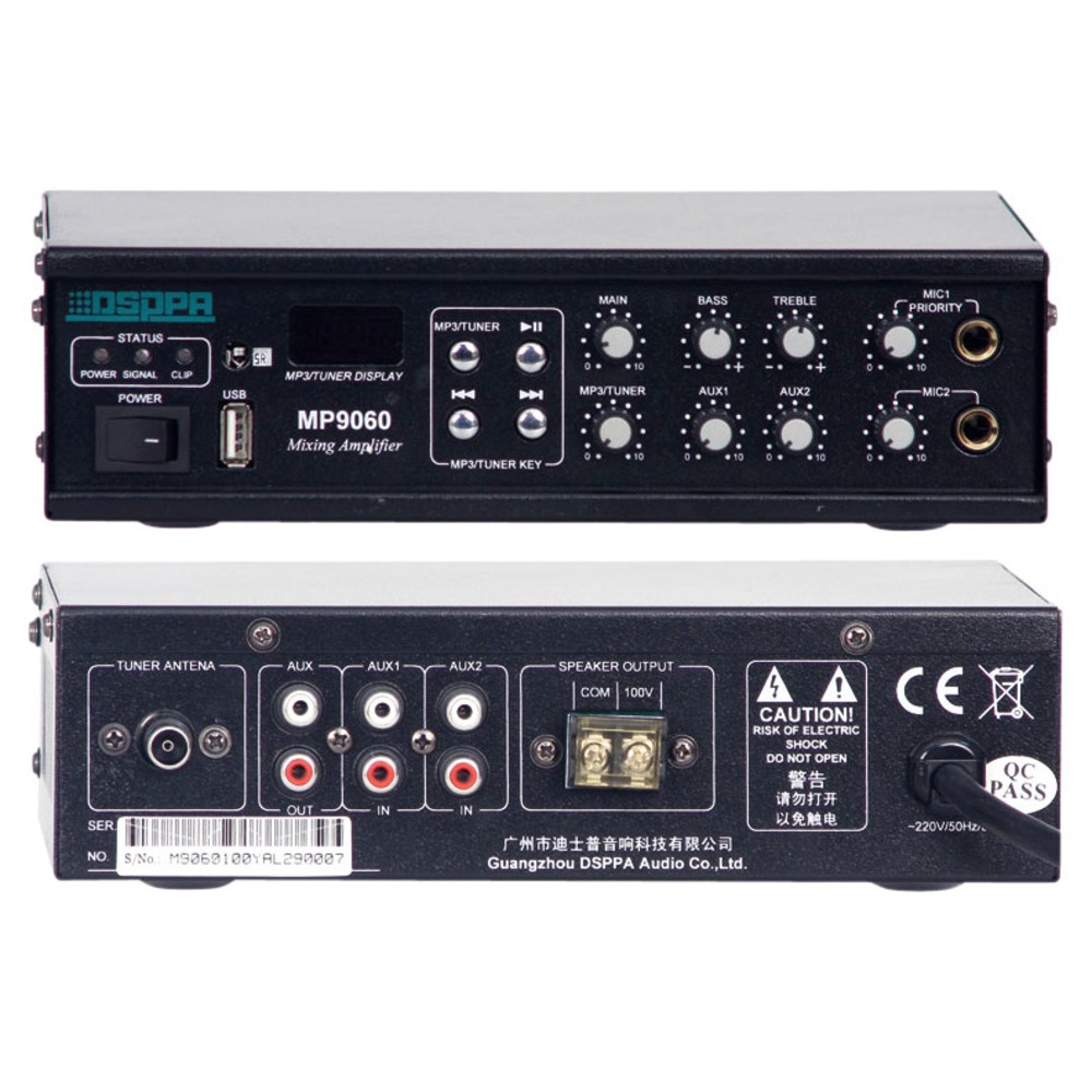 | Тип | Микшер-усилитель со встроенными источниками аудио сигнала: цифровым FM-тюнером, MP3 плеер со входом USB для карт FLASH памяти |