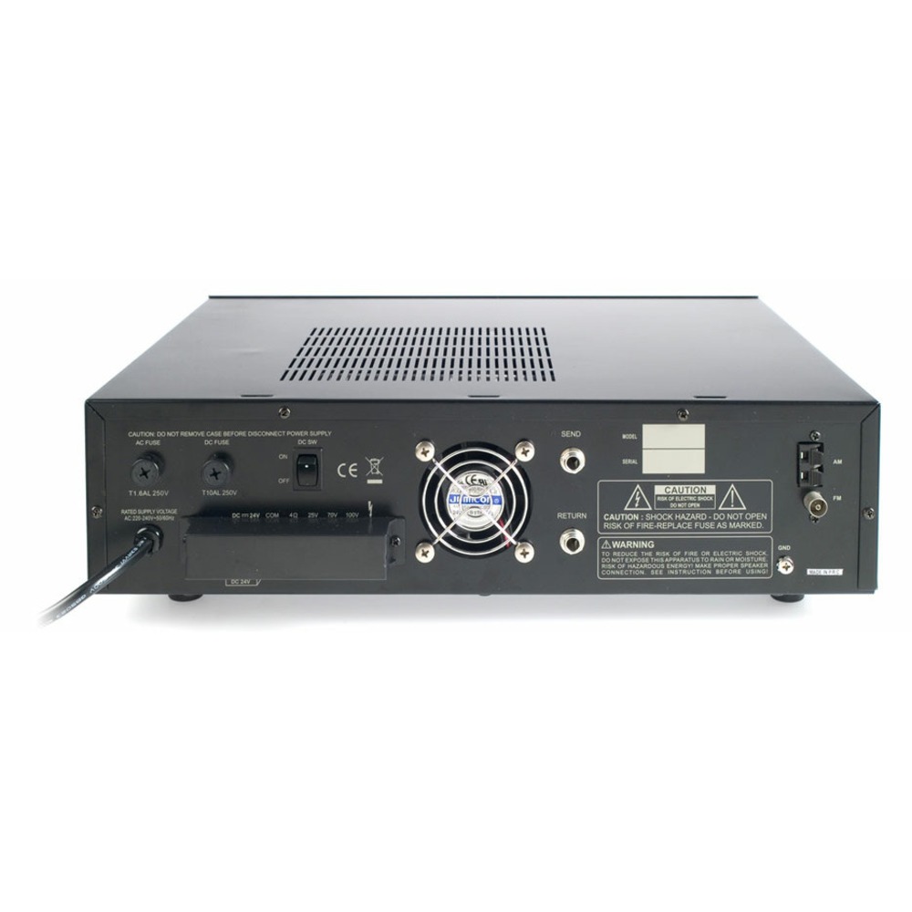 Тип - трансляционный моноблок, Выходная мощность RMS / MAX - 90 / 130 w, Входы - 2x mic сбалансированный | 1x mic / aux несбалансированным, Входная чувствительность - mic : 3мв / 600 ом | aux : 600 мв / 10 ком, Управление - 2 громкости микрофона управления | 1 mic / aux громкости | 1 treble тонн управления | 1 басы управления | радио тюнер управления | cd-плеер управления | 1 сирена активации переключателя.