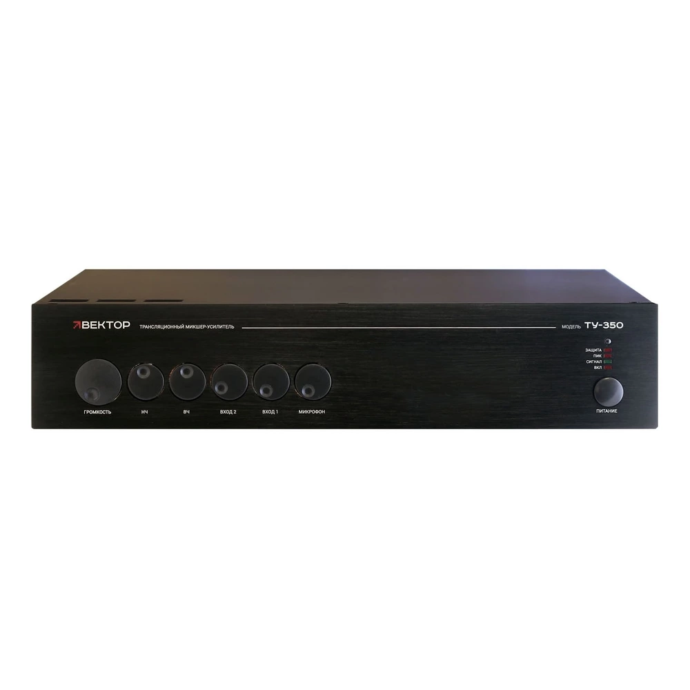 ВЕКТОР ТУ-350 Компактный микшер-усилитель. Мощность 350Вт. Выход 100В 4-16Ом, 1 микр и 2 AUX входа, 1 AUX выход. Питание 220В. Размеры 482 х 88 х 410 мм. Вес кг.