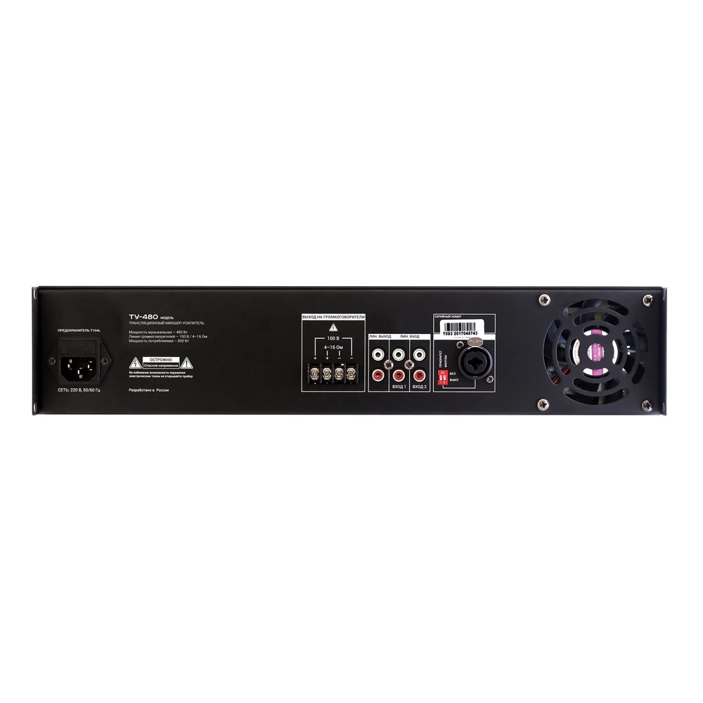 ВЕКТОР ТУ-480 Компактный микшер-усилитель. Мощность 480Вт. Выход 100В 4-16Ом, 1 микр и 2 AUX входа, 1 AUX выход. Питание 220В. Размеры 482 х 88 х 410 мм. Вес кг.