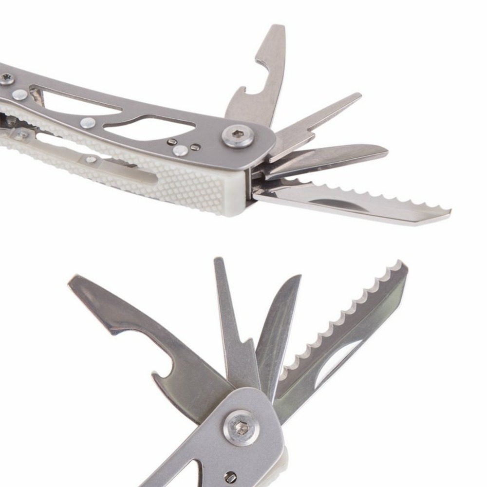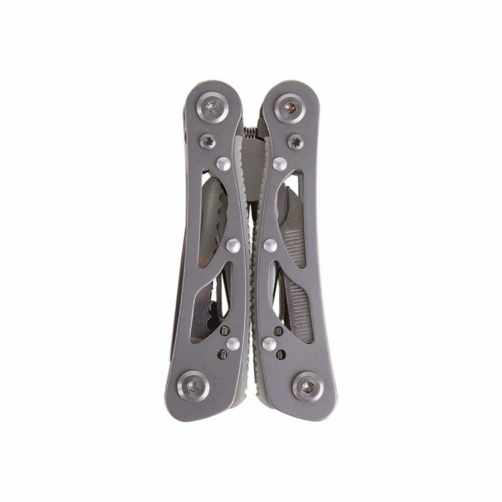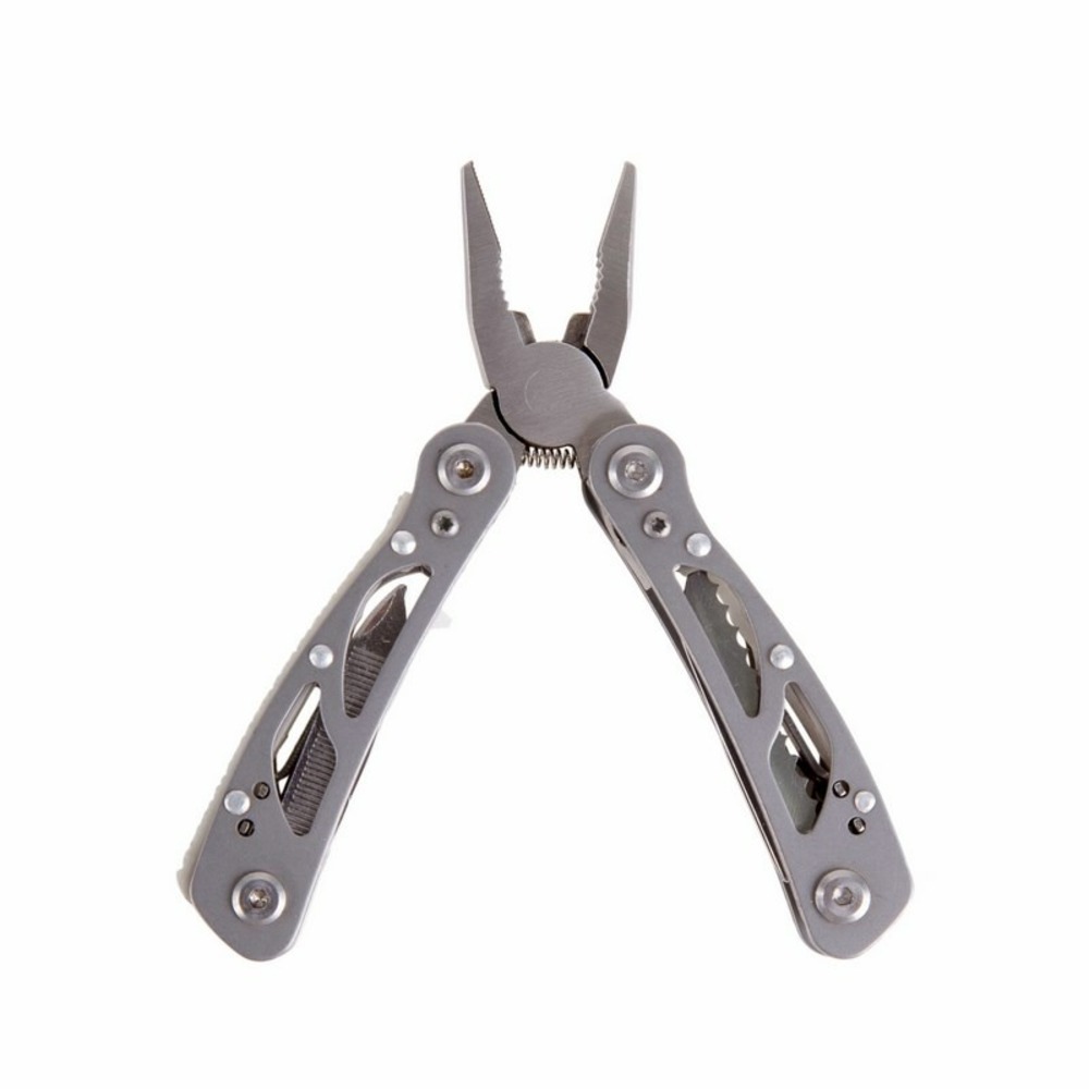 Многофункциональный инструмент (мультитул) является отличным решением для различных работ в хозяйстве и туристических походах, отличный подарок для каждого мужчины. Материал: нержавеющая сталь 420 Твердость: 42-45 HRC Цвет: стальной Размер: в закрытом состоянии 74 мм; в открытом 113 мм Вес: 92 г Упаковка: блистер Чехол с креплением на ремень Инструменты: Плоскогубцы Кусачки Нож Отвертка шлицевая SL2 Отвертка шлицевая SL3 Отвертка крестовая PH1 Пилка для ногтей Открывалка для бутылок с отверткой шлицевой SL4 Нож с зазубринами Консервный нож