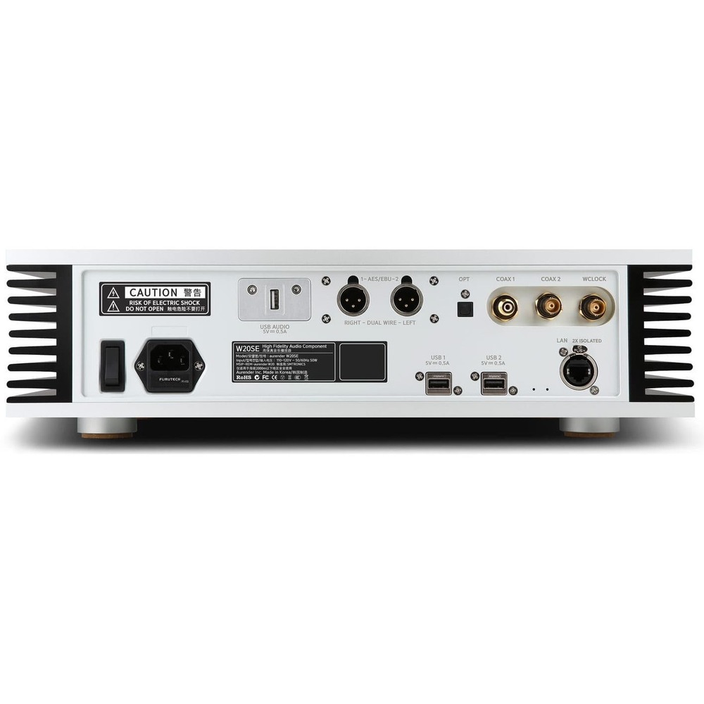 Разработанный для использования с высокопроизводительными цифро-аналоговыми преобразователями, Aurender W20SE является одним из немногих музыкальных серверов, обеспечивающих поддержку внешних синхронизирующих слов, используемых в профессиональных студиях звукозаписи и записи. Кроме того, двухпроводной режим AES / EBU используется некоторыми цифро-аналоговыми преобразователями эталонного класса, чтобы обеспечить раздельную передачу левого и правого каналов для лучшей точности. Тем не менее, даже без использования внешнего синхросигнала или двух выходов AES / EBU, аккумуляторный источник питания W20SE обеспечивает значительно более низкий уровень шума для абсолютно бесшумного фона. Благодаря встроенному твердотельному накопителю емкостью 4 ТБ и кэш-диску емкостью 1 ТБ для воспроизведения, W20SE является идеальным решением даже для самых обширных музыкальных коллекций с высоким разрешением.