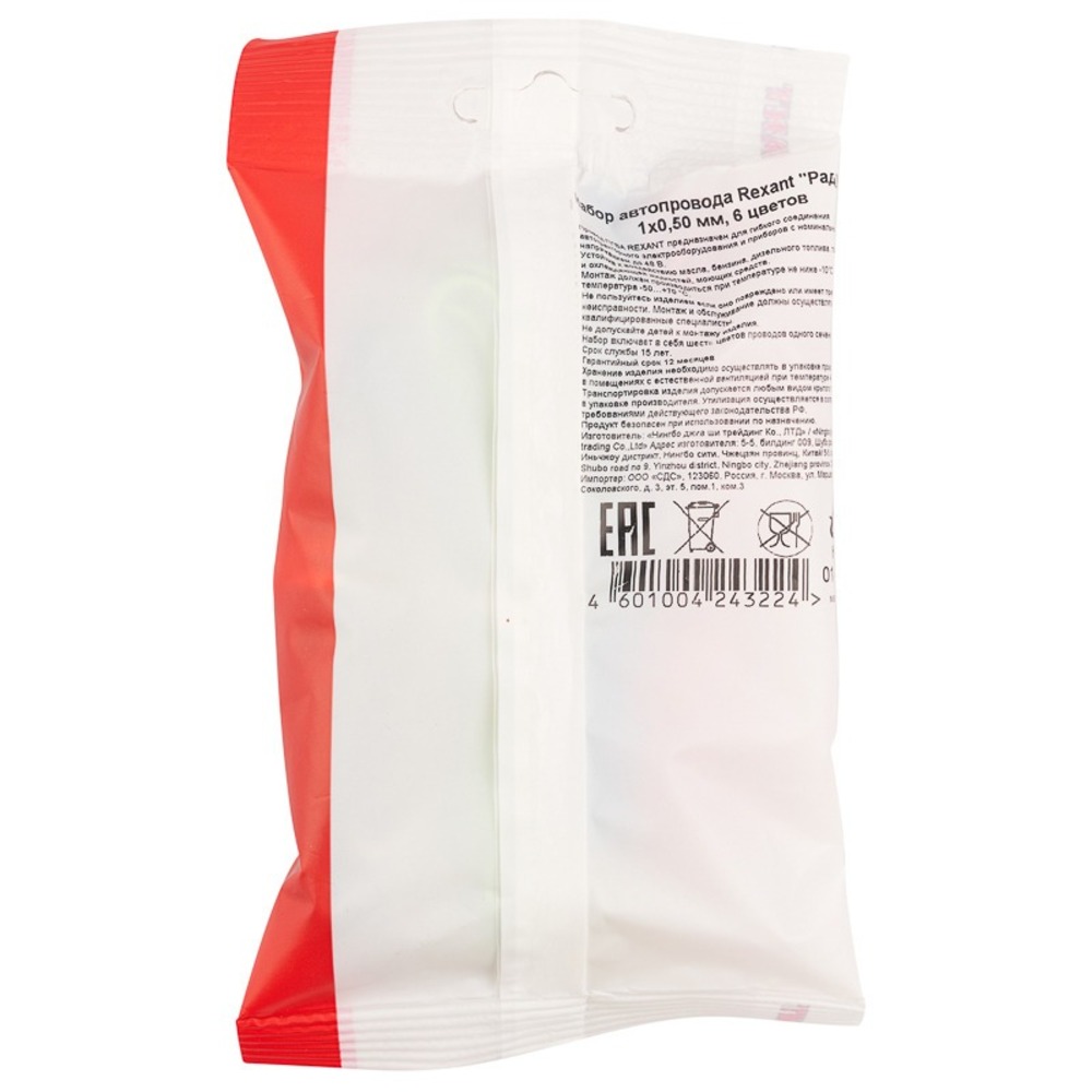 Набор автопровода REXANT Размер: 1х0,50 мм 6 цветов (белый, желтый, зеленый, красный, синий, черный) Длина: 3 метра