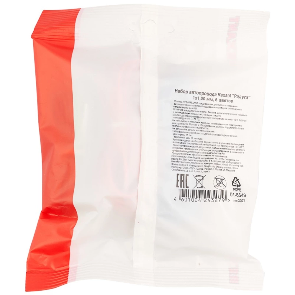 Набор автопровода Rexant 01-6549 «Радуга» 1х1,00 мм, 6 цветов (белый, желтый, зеленый, красный, синий, черный) по 3 метра