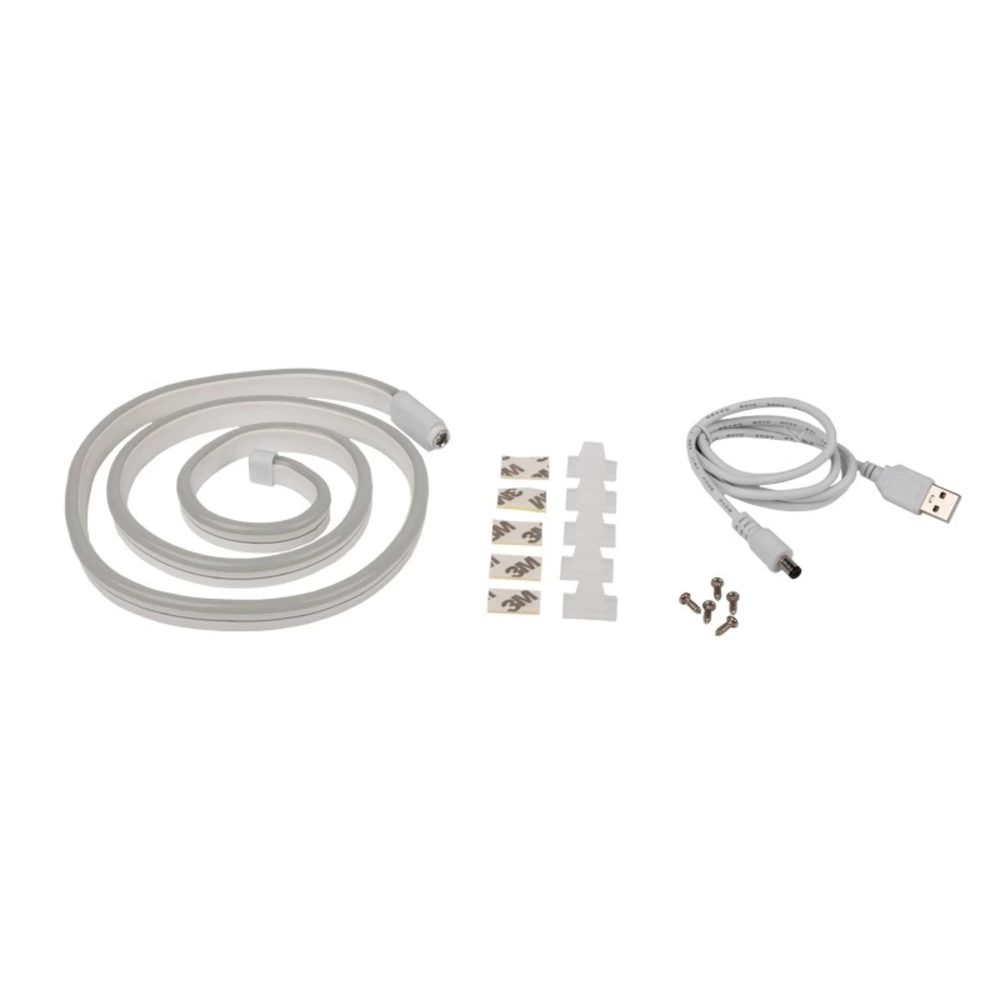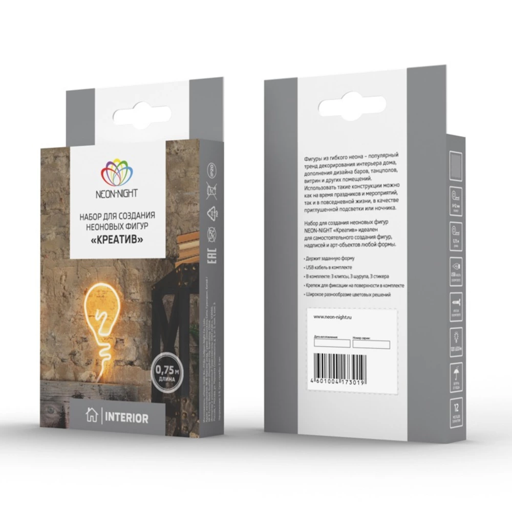 Набор для создания неоновых фигур «Креатив» станет отличным подарком к любому празднику и порадует как взрослых, так и детей, возможностью создать уникальные световые фигуры, которые гармонично украсят интерьер. Длина трубки с 90 диодами — 75 см. Светодиоды излучают ровный синий свет и получают питание от стандартной сети через понижающий трансформатор на 5 В. В комплекте идет USB-шнур, монтажные клипсы, наклейки, крепеж. Гибкий неон предназначен для размещения в сухих теплых помещениях.