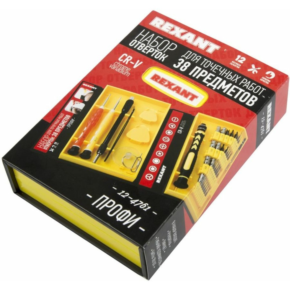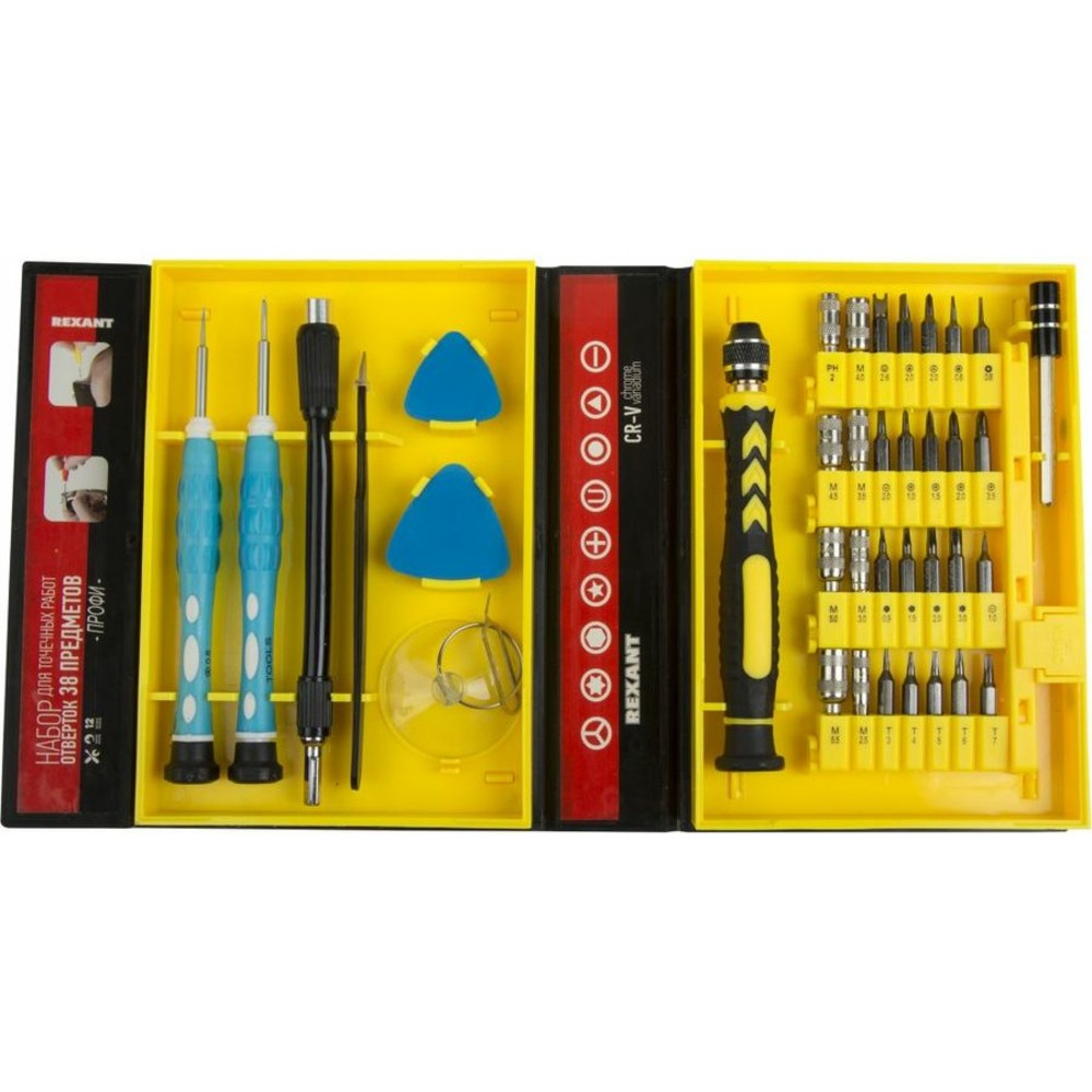 Набор для точечных работ 38 предметов Профи REXANT предназначен для выполнения прецизионных работ в электронике и электромеханике. Прекрасно подойдет для ремонта мобильных телефонов, планшетов, электронных книг, часов, ноутбуков, MacBook, iPhone и др.