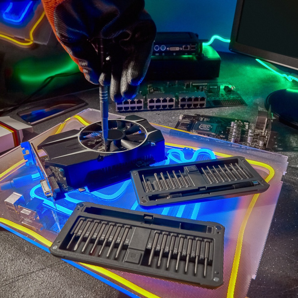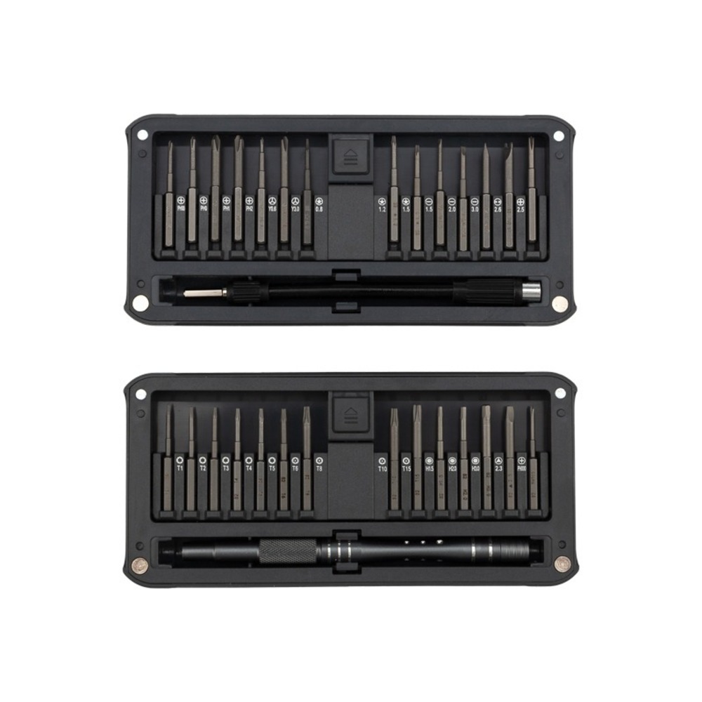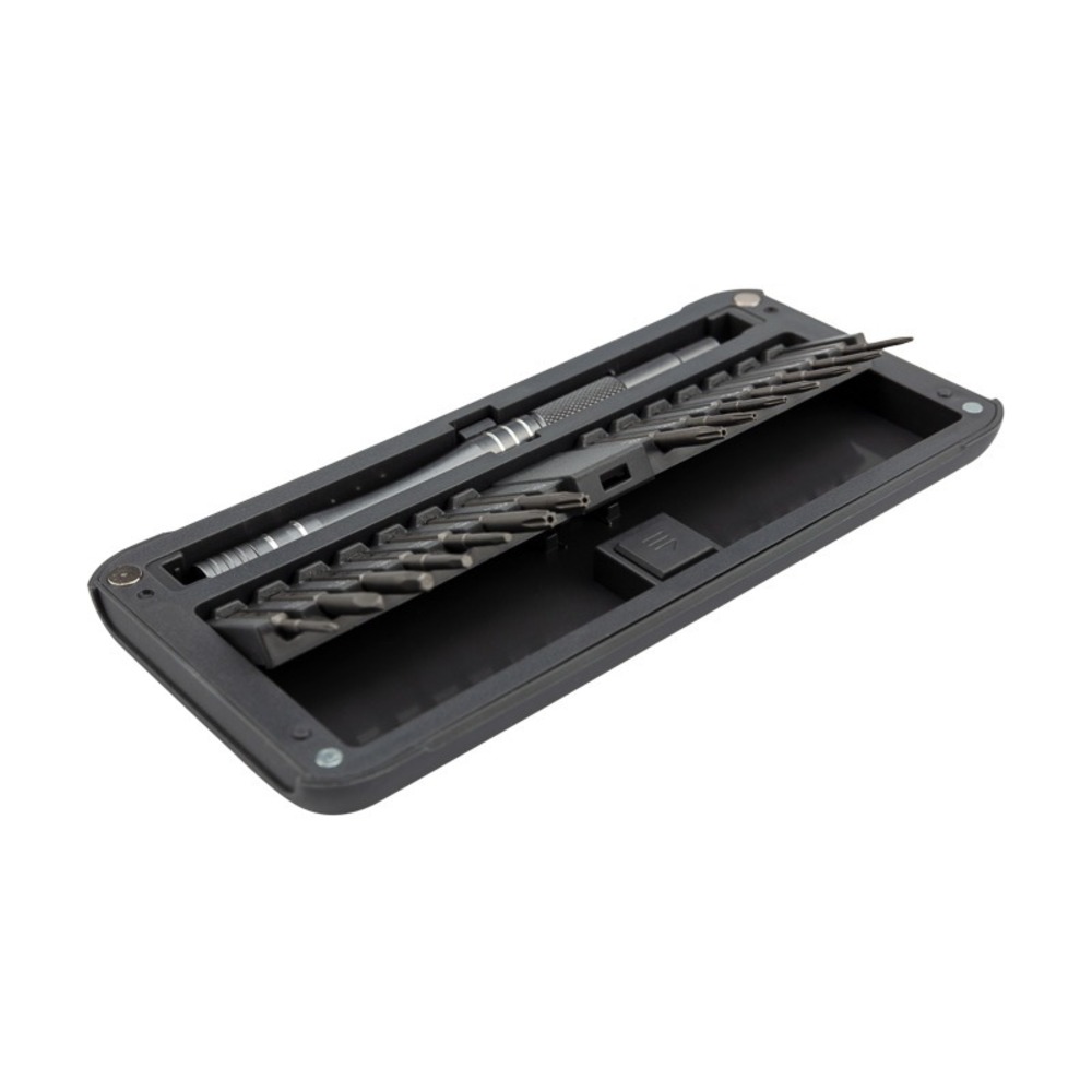 Набор отверток для точных работ KRANZ RA-02 отлично подходит для ремонта телефонов, компьютеров, приемников и для многих популярных приборов, которые используются в быту. Выполнен из качественной инструментальной стали S2, обладающей высокой прочностью к механическим повреждениям. Точно подобранные по характеристикам магнитные насадки отлично подходят для профессионального ремонта и для мелких бытовых работ. Компактный кейс удобен в транспортировке и с легкостью открывается одной рукой. В наборе отвертка с 29 битами: 1.5, 2.0, 3.0, 4.0 PH0, PH1, PH2, PH00, PH000, T1, T2, T3, T4, T5, TR6, TR8, TR10, TR15, H1.5, H2.0, H3.0, P2, P5, P6, U2.6, Y0.7, Y3, Triangle 2.3, Special PH2.5. Посадка бит: 1/8
