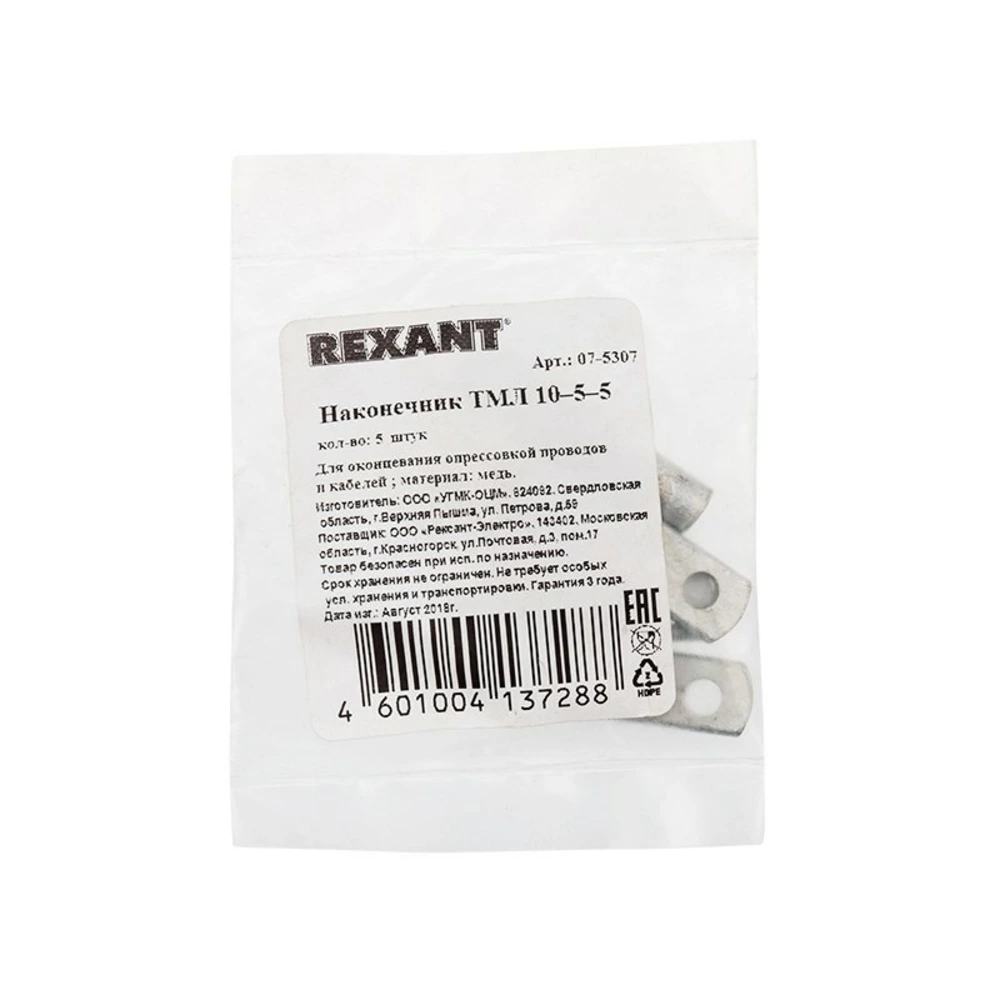 Наконечник Rexant 07-5307 ТМЛ 10–5–5 (10 мм - 5 мм) ГОСТ 7386-80 (в упак. 5 шт.)