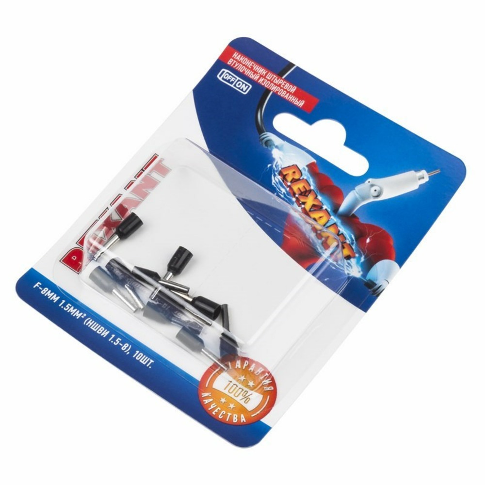 Наконечник штыревой втулочный Rexant 06-0406-A F-8 мм, 1.5 мм, НШВи 1.5-8 / Е 1,5-8 / E1508, черный, в упак. 10 шт.