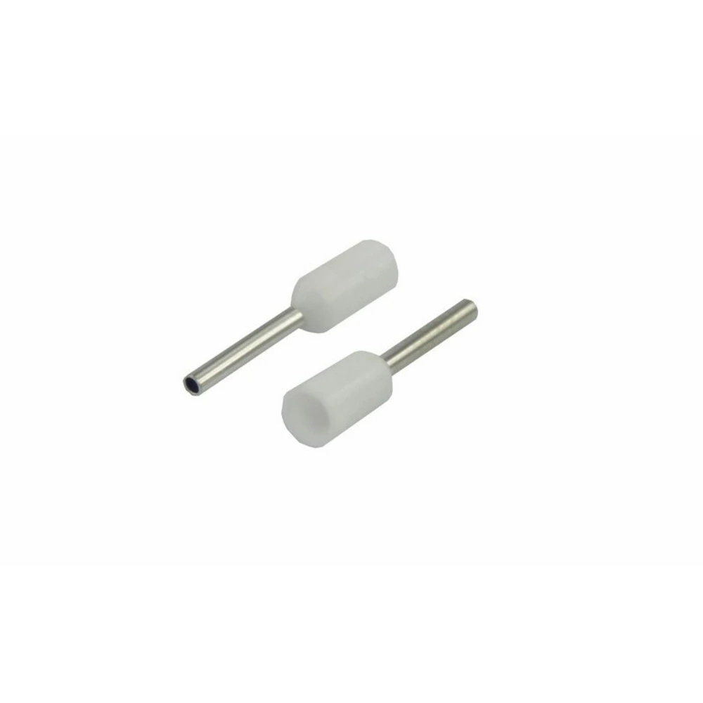 Наконечник штыревой втулочный изолированный (НШВИ F-8 мм) 0.5 мм² белый REXANT предназначен для создания быстрого и качественного подключения различного электрооборудования и монтажа электросетей. Такой современный способ подготовки кабеля к соединению заменяет процесс облуживания или скрутки многожильных медных проводов, формируя целостное окончание кабеля с последующим подключением промышленного или бытового электрооборудования. Втулочный наконечник состоит из латуни, с поверхностным электролитическим лужением, и рассчитан на монтаж одного проводника с соответствующим сечением под опрессовку. Предварительно зачищенная жила заводится внутрь латунной втулки и обжимается специальными пресс-клещами (ht-864 арт.12-3202, 12-3202-4; ht-866 арт.12-3205; ht8 6-4 арт.12-3106; ht-301E арт.12-3113, 12-3114, 12-3013) в считанные секунды. Для удобства заведения многожильного провода внутрь латунной втулки предусмотрена манжета конической формы, изготовленная из поливинилхлорида (ПВХ), обеспечивающая надежную защиту соединения от влаги и других внешних воздействий. Технические характеристики: Температурный диапазон: -10...+75 ℃ Сечение обжимаемого провода: 0.5 мм² Рабочая длина контакта: F = 8 мм Длина наконечника: L = 14 мм Диаметр втулки: D = 1.3 мм Такой быстрый способ подключения кабеля значительно сэкономит ваше время на монтаж электросети.