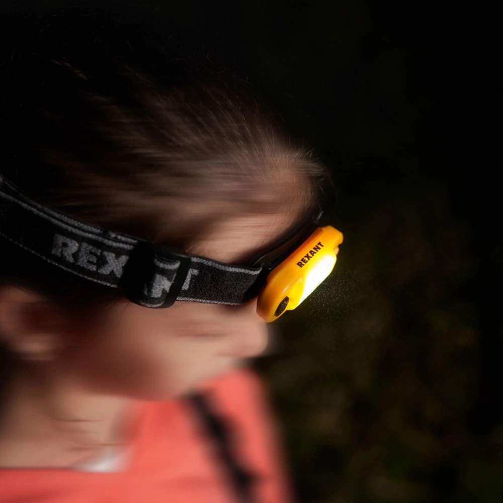Налобный фонарь поворотный на шарнире Rexant 75-700 100%, 50%, красный свет, пульсирующий красный; встроенный аккумулятор