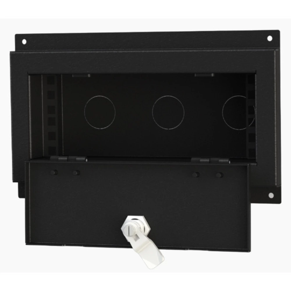 Лючок встраиваемый mini 2U, настенный, с дверцей (дверца с замком). Габариты (ДхШхГ) 291х177х98 мм. Посадочный размер (ДхШхГ) 255х105х80 мм. Количество кабельных заглушек в дне 3 шт. Количество кабельных заглушек в боковине 3 шт. Тип устанавливаемых панелей: рэковая панель 9,5" до 2U. В комплект входит 3 кабельных ввода размера PG29.Цвет: черный муар.