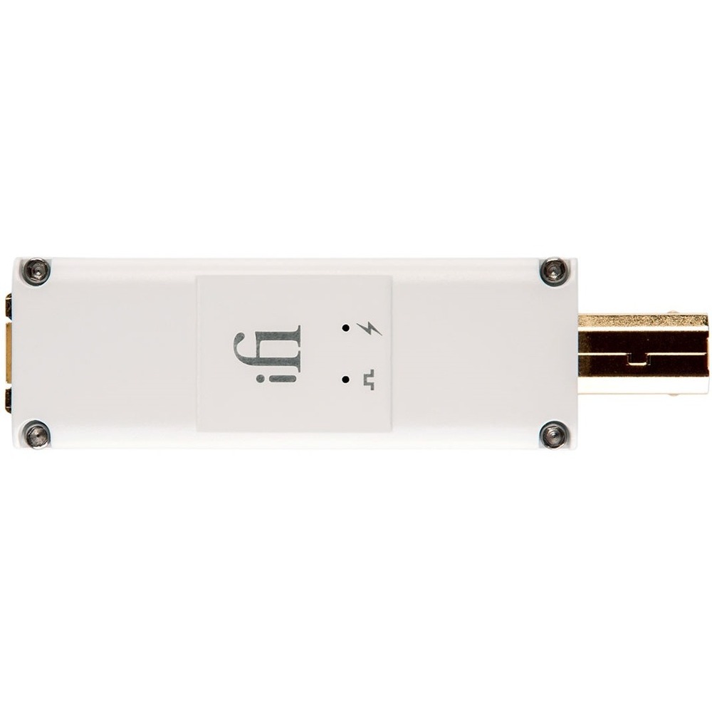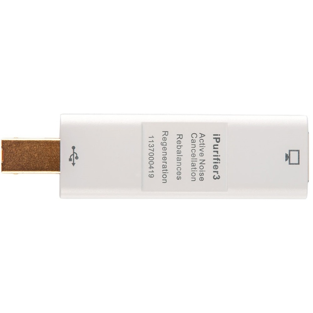 Эта модель выполнена в компактном корпусе белого цвета и оснащена разъемом USB B (версии 3.0) с одной стороны, и USB A с другой. На боковой панели iFi audio iPurifier3 находятся два миниатюрных светодиода, один из которых показывает наличие напряжения питания, а другой сигнализирует о передаче данных. В устройстве используется активная схема подавления помех ANC, выполненная по тому же принципу, что и аналогичные системы, применяемые в военной технике. Кроме подавления помех, iFi audio iPurifier3 осуществляет и очень важную функцию снижения уровня джитера передаваемого цифрового сигнала за счет его передискретизации. Кроме того, этот миниатюрный блок устраняет и перекос импеданса USB-интерфейса, который может возникать при использовании недостаточно качественных соединительных кабелей, и также приводить к снижению качества звука. iFi audio iPurifier3 поддерживает полную скорость передачи данных, которая предусмотрена стандартом USB 3.0, а также поддерживает и подключение USB 2.0. В результате использования фильтра уровень шума снижается на 40 дБ, то есть почти в 100 раз, что гарантирует точное дальнейшее преобразование цифрового сигнала.
