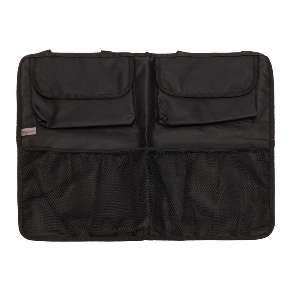 Органайзер на спинку заднего сиденья применяется для компактного размещения различных аксессуаров в багажнике автомобиля. Крепится за подголовники спинки заднего сиденья. Закрывает 2/3 площади спинки сиденья. Имеет 4 вместительных кармана.