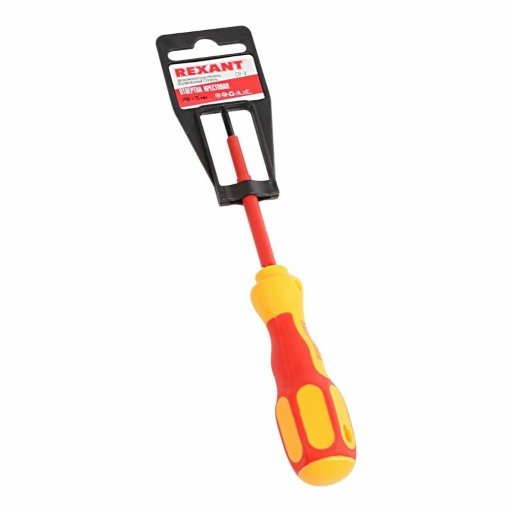 Отвертка Rexant 12-4715 Отвертка крестовая диэлектрическая PH0 х 75 мм, до 1000 В, двухкомпонентная рукоятка