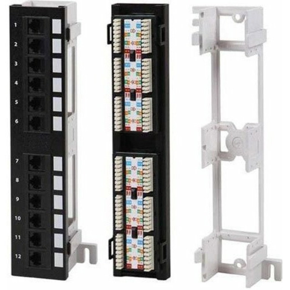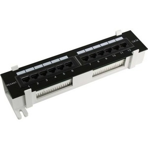 Патч-панель, она же коммутационная панель представляет собой панель с 12 гнездами RJ-45, расположенными на лицевой стороне панели, и контактами, предназначенными для фиксированного соединения с кабелями, на тыльной стороне. Самая распространенная в телекоммуникациях патч-панель – это фиксированная коммутационная панель для стандартных информационных шкафов. Патч-Панель 10" 12 гнезд Cаt.5e выполнена с однотипными разъемами – неэкранированными RJ-45 разъемами для кабелей категории 5е. Для фиксированного соединения с кабелями используются IDC-разъемы. Патч-панель 10" 12 гнезд Cаt.5e монтируется на стенку. Использование патч-панелей поможет организовать кабельное пространство и упорядочить кабельную разводку.