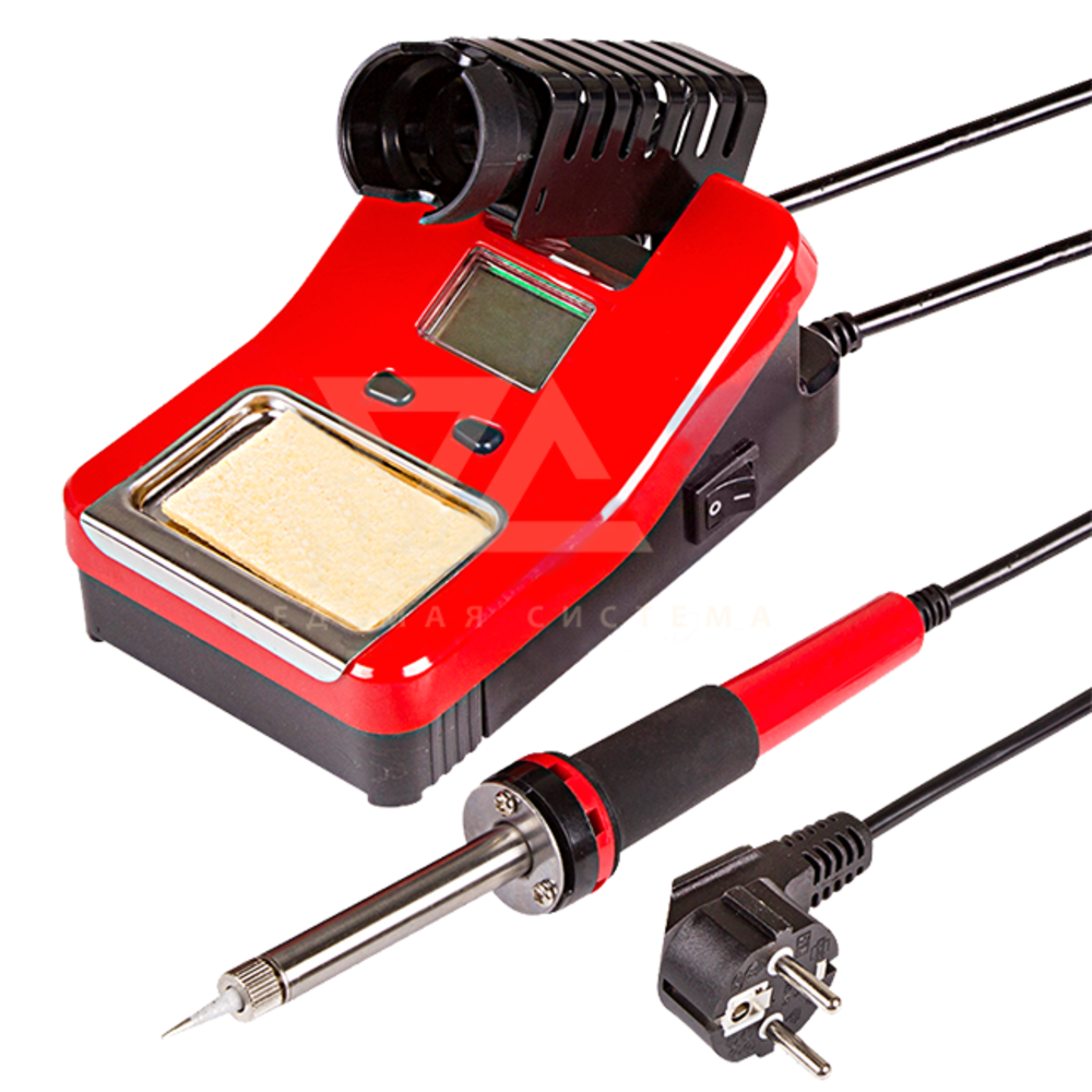 Станция комплектуется паяльником оптимальной мощности 40 Вт, металлическим держателем паяльника, губкой для очистки жала в ложементе.