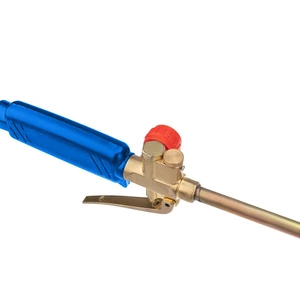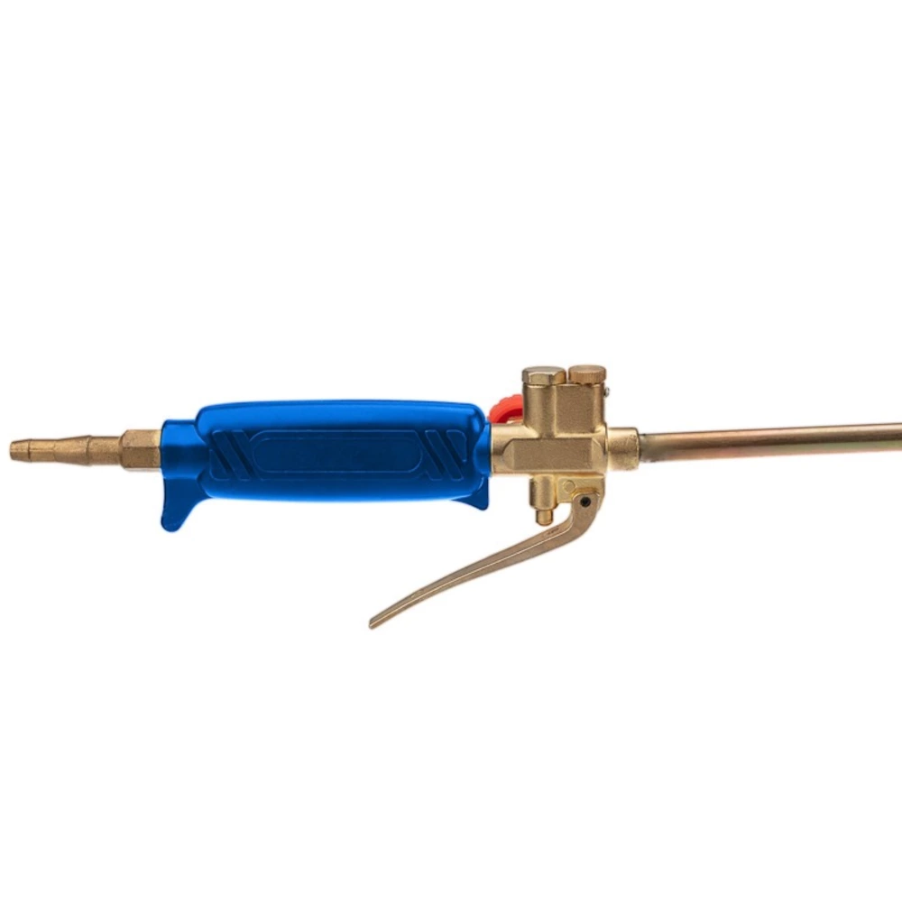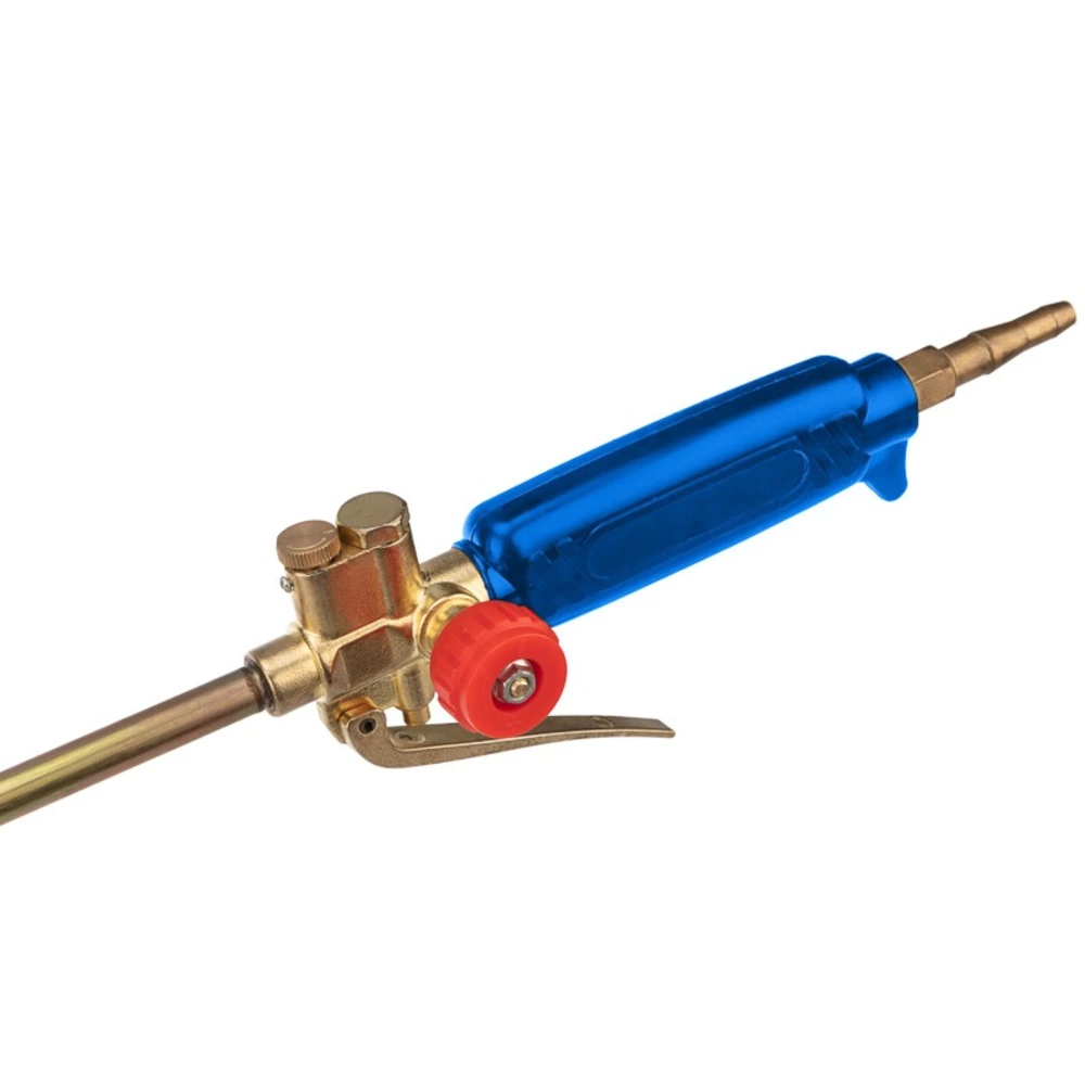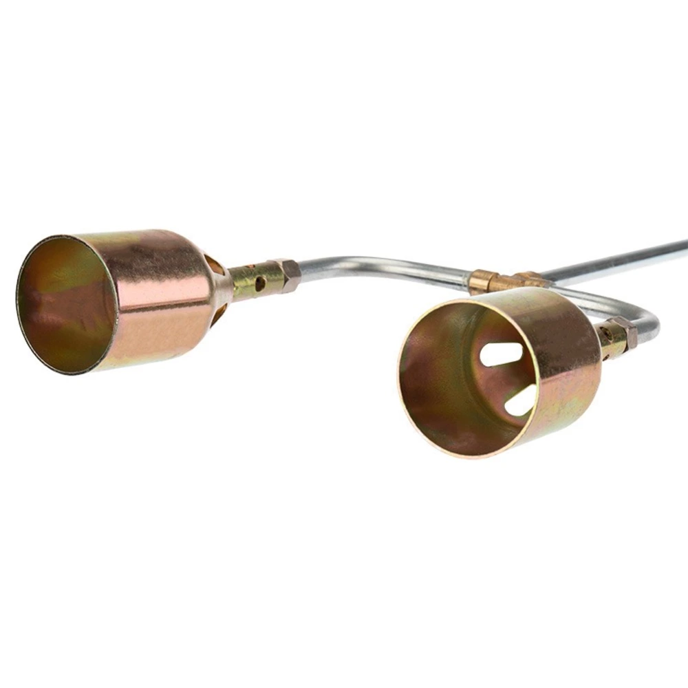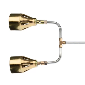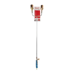 Горелка кровельная REXANT ГВ2-1000Р – газовая горелка с 2 соплами, вентилем и рычагом для нагрева битумных и иных материалов при проведении гидроизоляционных работ, обжига и очистки металлических поверхностей. Два стакана диаметром 50 мм каждый эффективно прогревают значительную площадь материала в короткий срок. Стаканы сделаны из латуни, что повышает срок службы и температуростойкость изделия. Инструмент состоит из металлического стакана с отверстиями, рукоятки, газоподающей трубки. Подключается к баллону с газом пропаном с помощью газового шланга. Длина горелки позволяет использовать ее как для локальных, так и для масштабных кровельных работ. Технические характеристики: Тип: инжекторный Топливо: пропан Тип сварки/резки: газовоздушный Исполнение: рычажное Присоединительные размеры: ниппель универсальный d 6/9 Диаметр стаканов: 50 мм Габариты: 1000×50×230 мм Вес: 0.64 кг