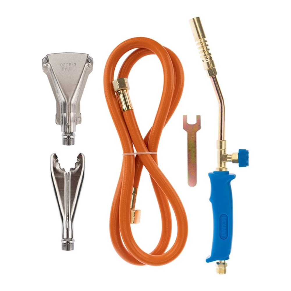 Горелка пропановая в наборе REXANT ГВП-400К – это мощный инструмент для нагрева и спайки различных металлов. Качественная газовоздушная горелка с эргономичной нескользящей ручкой обеспечивает максимальный комфорт для оператора при проведении различных работ. Все элементы набора выполнены из качественных, износостойких и жаропрочных материалов, рассчитанных на частую эксплуатацию в профессиональных мастерских. В комплект входят три насадки – точечная, для нагрева по окружности и плоская. Плоская насадка подойдет для нагрева поверхностей, насадка для нагрева по окружности подходит для нагрева труб. Подходит для спайки, подогрева как черных, так и цветных металлов. Технические характеристики: Используемый газ: пропан Количество насадок: 3 Диаметр мундштука: 17 мм Длина шланга: 1.5 м Диапазон давлений пропана (бутана): от 1 до 1,8 кгс/см³ Исполнение: вентиль Вес 0,72 кг Комплектация: горелка, шланг, 3 насадки, 2 ключа, упаковка.