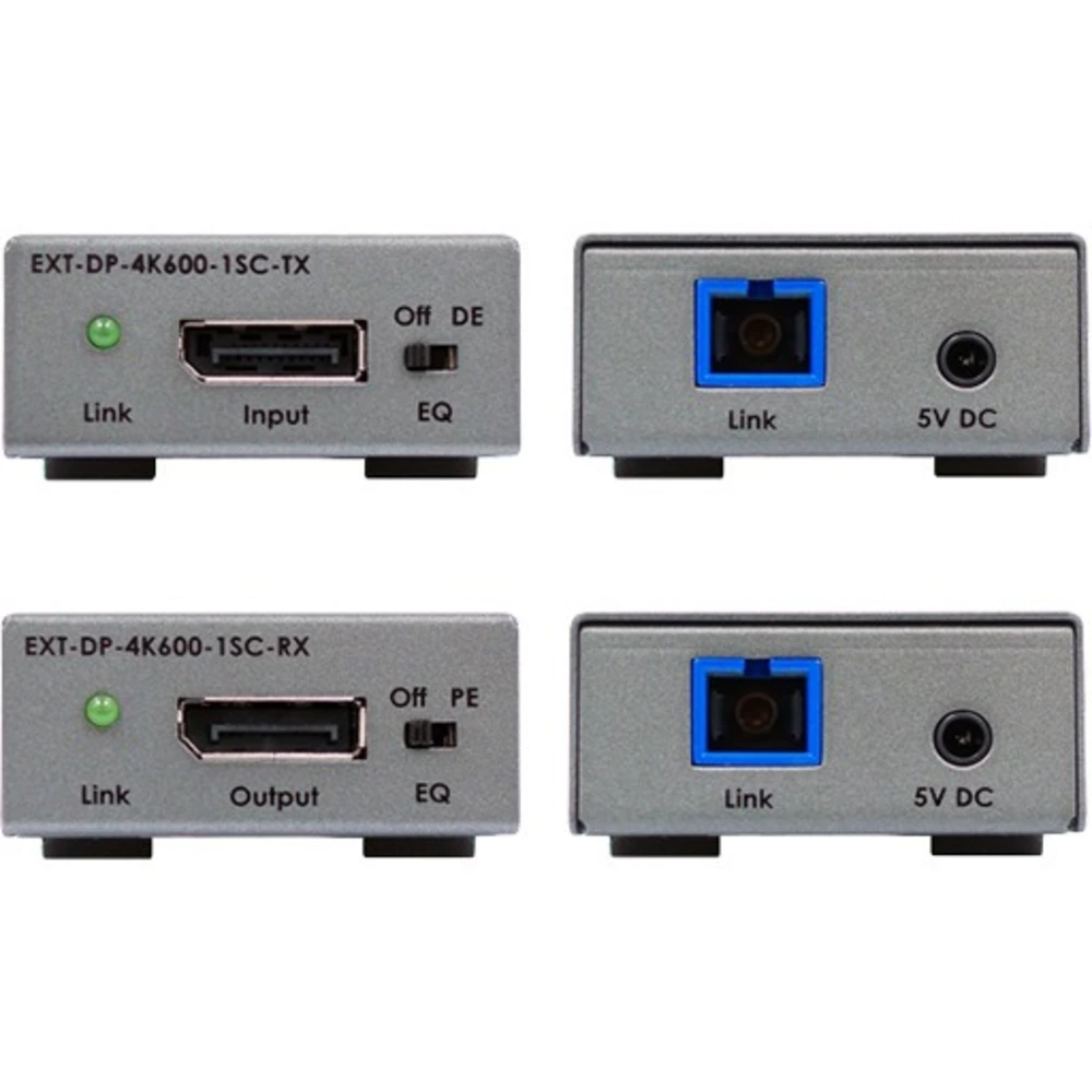EXT-DP-4K600-1SC – комплект устройств для передачи сигналов DisplayPort 1.2 разрешением до 4K (3840x2160/60 Гц – 4:4:4) по одному многомодовому оптоволоконному кабелю с разъемами SC. Эквализация сигнала на передатчике и приемнике. Поддержка HDCP 1.4, 2.2 и DPCP, многоканального аудио. Расстояние передачи при разрешении 4K достигает 200 м (при использовании кабеля OM3 или лучше).