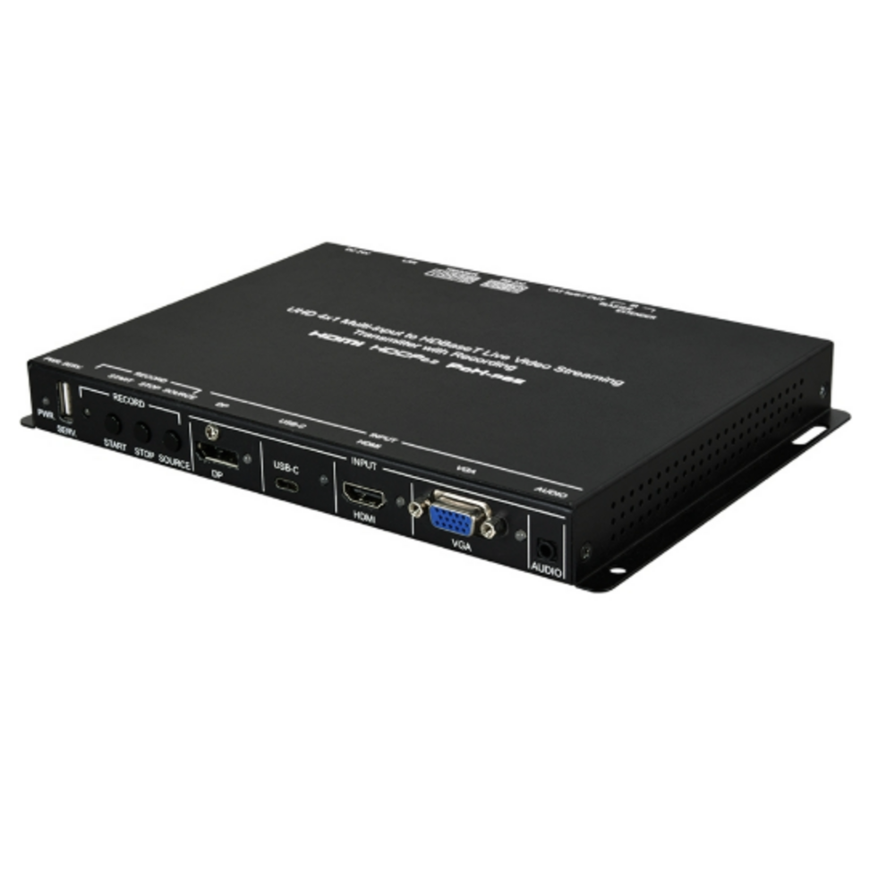 CDPS-P313RTX – передатчик по HDBaseT сигналов с разрешением до 4096x2160p/60 (при 4:2:0), по Ethernet сигналов сжатого видео H.264 разрешением до 1080p/60. Источниками являются сигналы HDMI, DisplayPort, USB-C разрешением 4096x2160p/60 (4:2:0) с поддержкой HDCP 1.4/2.2 и VGA 1920x1080p/60. Также обеспечивается передача и прием сигналов ИК по HDBaseT. Устройство может записывать контент на USB-накопитель. Имеет вход аналогового стерео (miniJack 3,5 мм) для передачи аудиосигнала при подключении устройства по VGA. Управление устройством осуществляется по ИК, RS-232, IP (telnet, web-интерфейс) и ''сухими контактами''.
