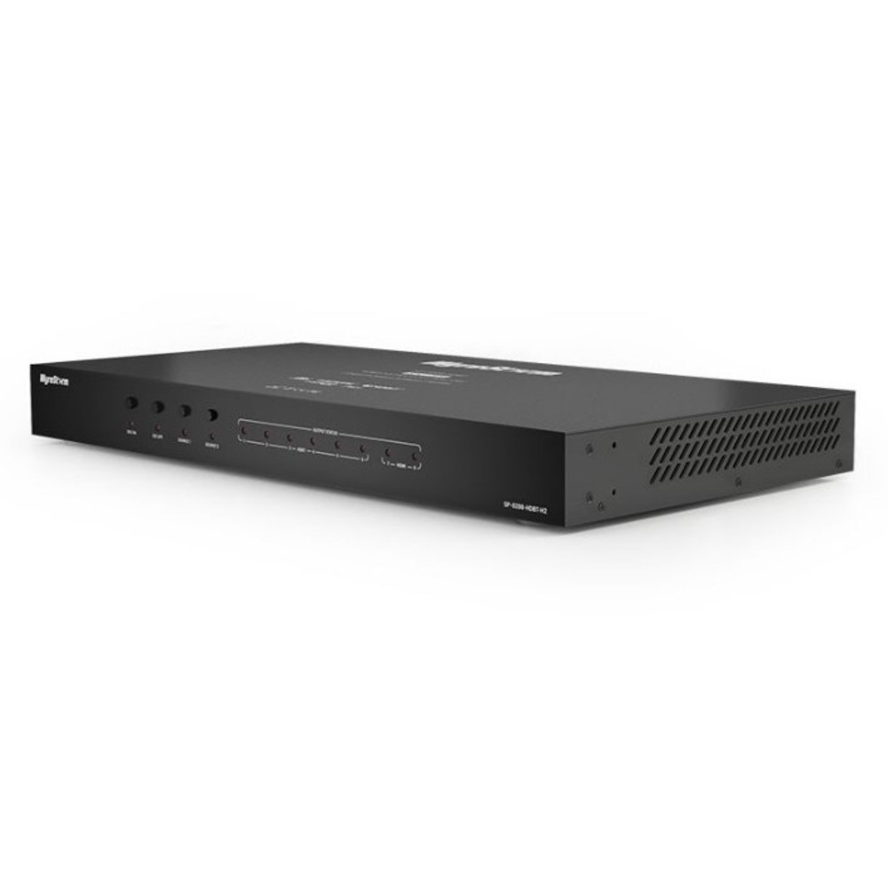 Поддержка HDCP 2.2, а также форматы 4К 60 Гц 4:2:0 и 4К 24 Гц с 10-битным HDR. SP-0208 предусматривает ручную регулировку EDID, удаленное питание РоН для приемников и управление Active СЕС для включения/выключения совместимых экранов одним нажатием кнопки.