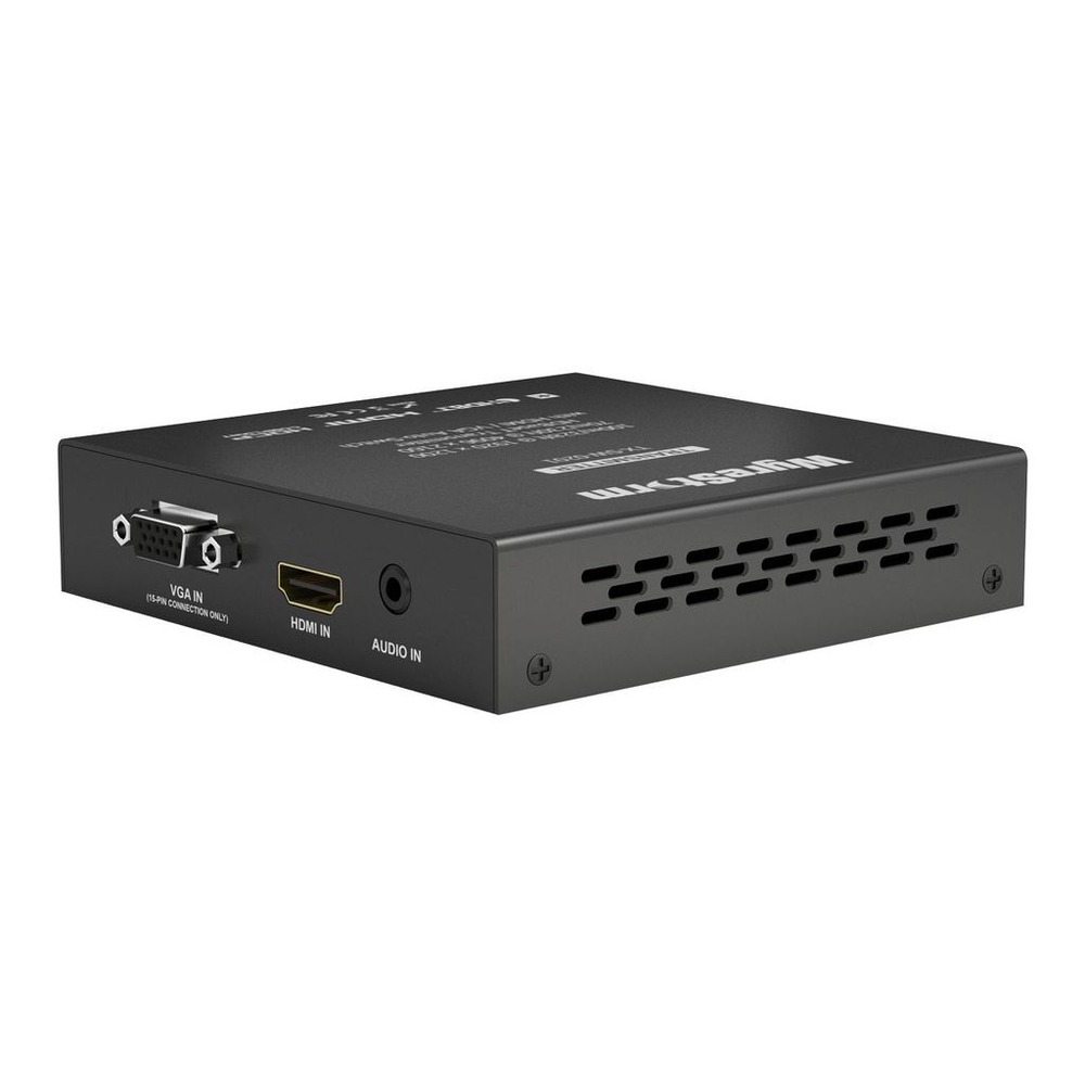 Коммутатор-передатчик, работающий по технологии HDBaseT. Поддержка 4K UHD, HDMI 1.4 и HDCP2.2. Автоматическое определение подключения источника. Позволяет передавать сигналы HDMI 1.4 либо VGA+audio (до 1920х1200) на расстояние до 70 метров для 4K и до 100 метров для 1080p.