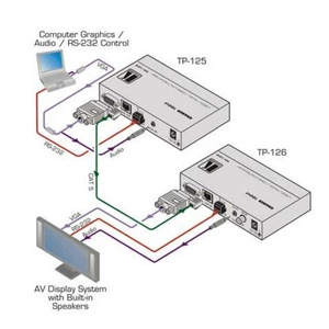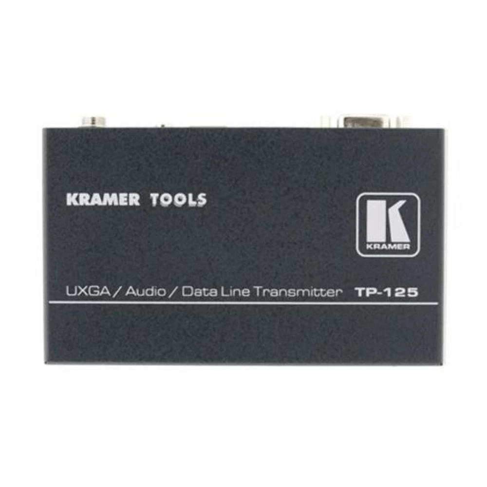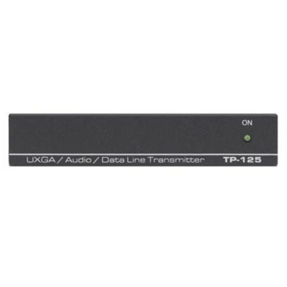 TP-125 - передатчик, предназначенный для передачи по витой паре компьютерного графического видеосигнала совместно с небалансным стереофоническим аудиосигналом и двунаправленными сигналами интерфейса RS-232. Широкая полоса пропускания - 350 МГц (-3 дБ). Основные особенности: разрешение до UXGA/WUXGA или до 1080р совместимость с HDTV разъемы для подключения витой пары - RJ-45 передача небалансного стереозвука выбор полярности строчных и кадровых синхроимпульсов дальность передачи до 100 м. (В зависимости от разрешения изображения и применяемого кабеля возможна передача и на большие расстояния система Power Connect™ - только 1 прибор пары передатчик-приемник должен быть подключен к источнику питания. Все остальные приборы, оснащенные такой системой, могут получать питание от первого по линии передачи сигнала, если ее длина не превышает 50 м) система RS-232 Connect™ - прибор, не мешая передаче видеосигнала, позволяет передавать данные интерфейса RS-232 в обе стороны (поддерживаются сигналы RxD, TxD) компактный корпус Kramer TOOLS™