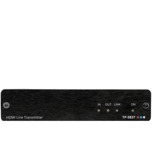 TP-583T – передатчик сигналов HDMI разрешением до 4096x2160/60 (4:4:4), сигналов RS-232 и ИК по витой паре HDBaseT. Устройство использует DIP-переключатели для расширенной настройки – выбора режима и степени компрессии, режима передачи ИК, RS-232. При стандартной компрессии передает сигналы 4096x2160/60 (4:4:4) на расстояние до 40 метров, а сигналы 4096x2160/60 (4:2:0) – до 70 метров. При высокой компрессии передает все сигналы по линии длиной до 70 метров.
